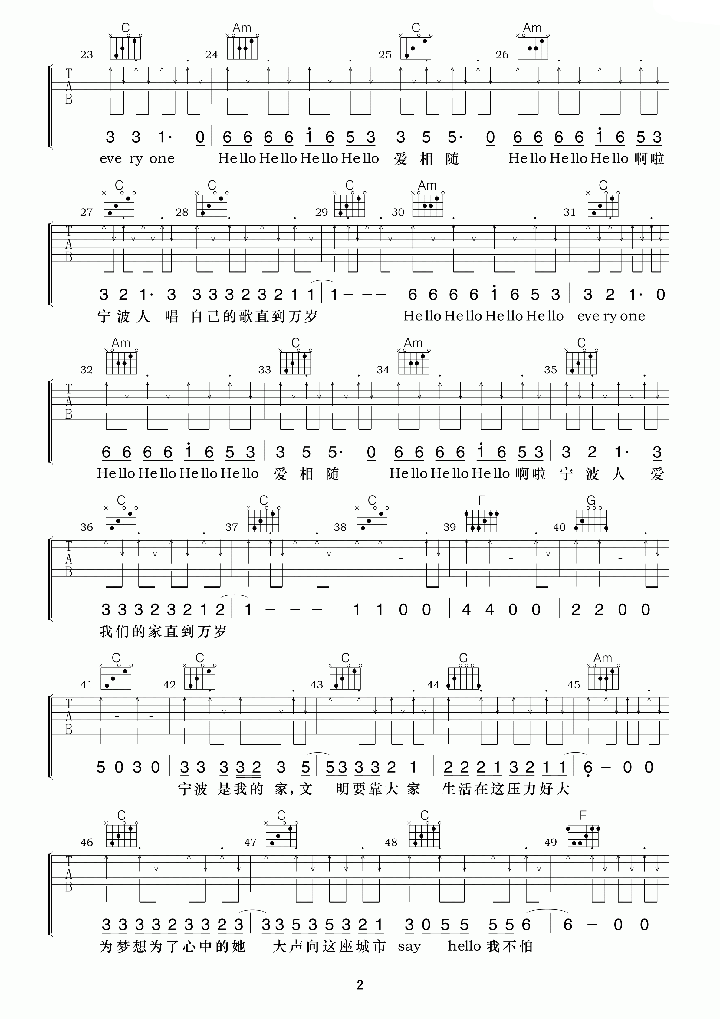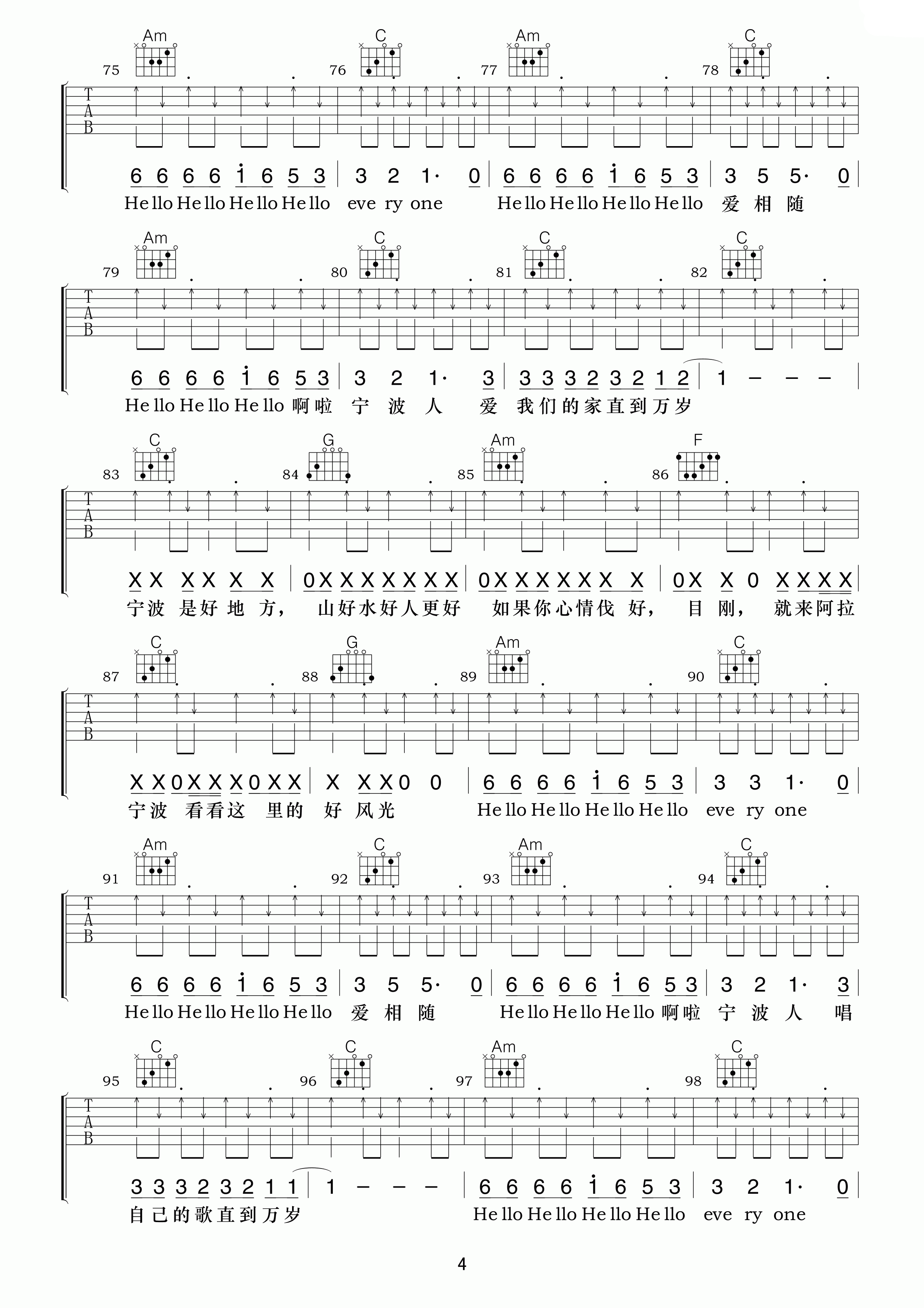 当前位置:琴谱网>吉他弹唱>Hello宁波