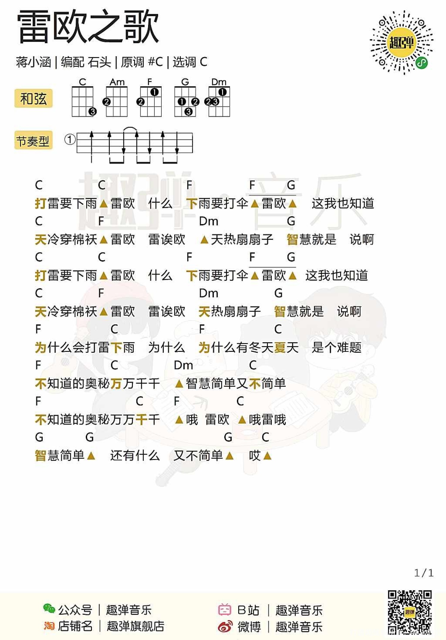 曲谱介绍: 海尔兄弟《雷欧之歌》尤克里里谱,共有1张高清图谱,免翻页排版设计。