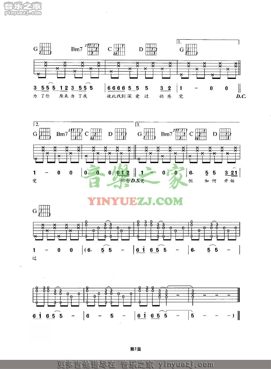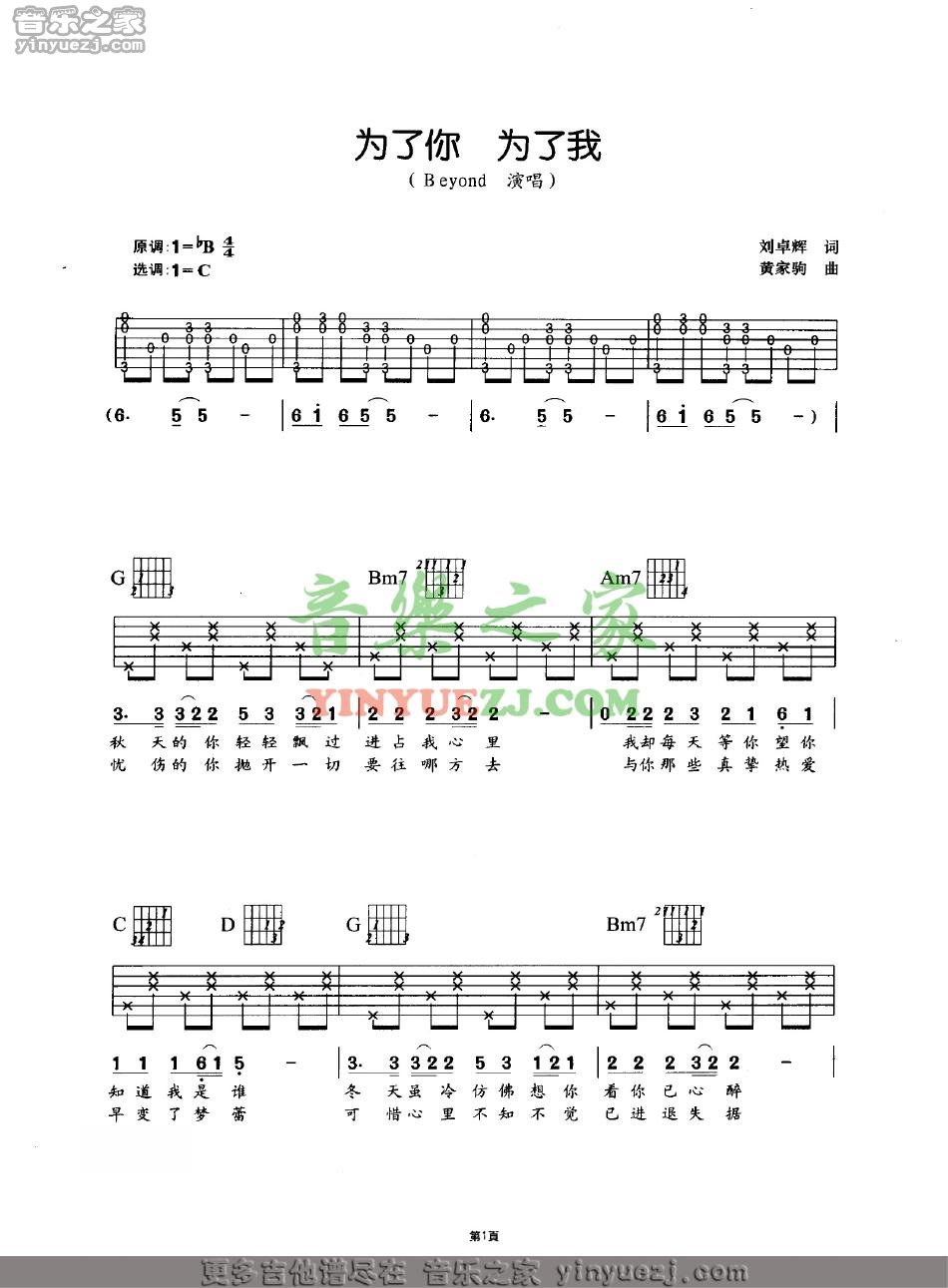 曲谱介绍: Beyond《为了你为了我》吉他弹唱谱,采用C调指法编配,共有3张高清图谱。