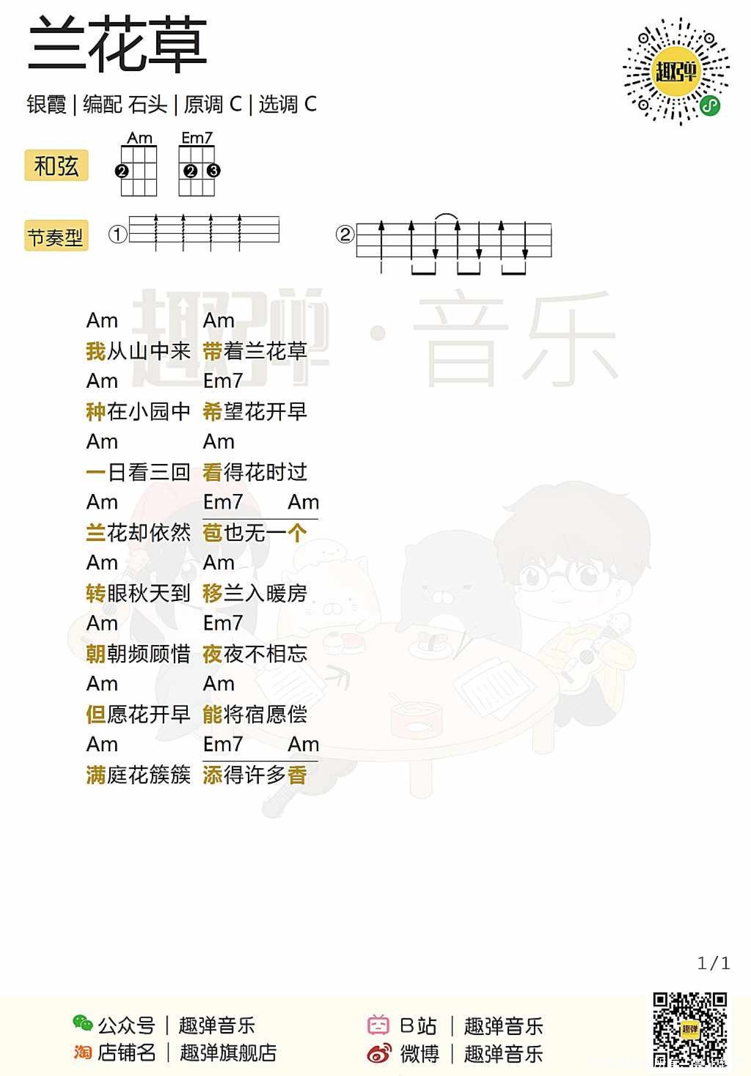 曲谱介绍: 银霞《兰花草》尤克里里谱,共有1张高清图谱,免翻页排版设计。