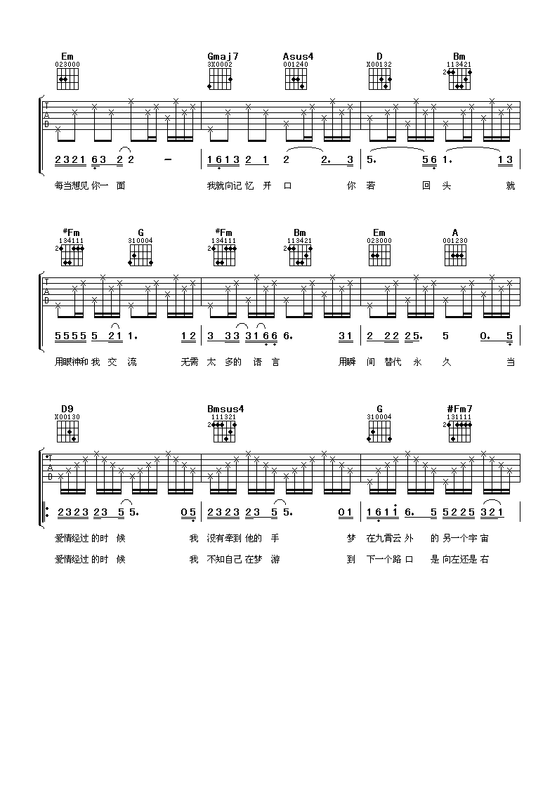 当前位置:琴谱网>吉他弹唱>当爱情经过的时候