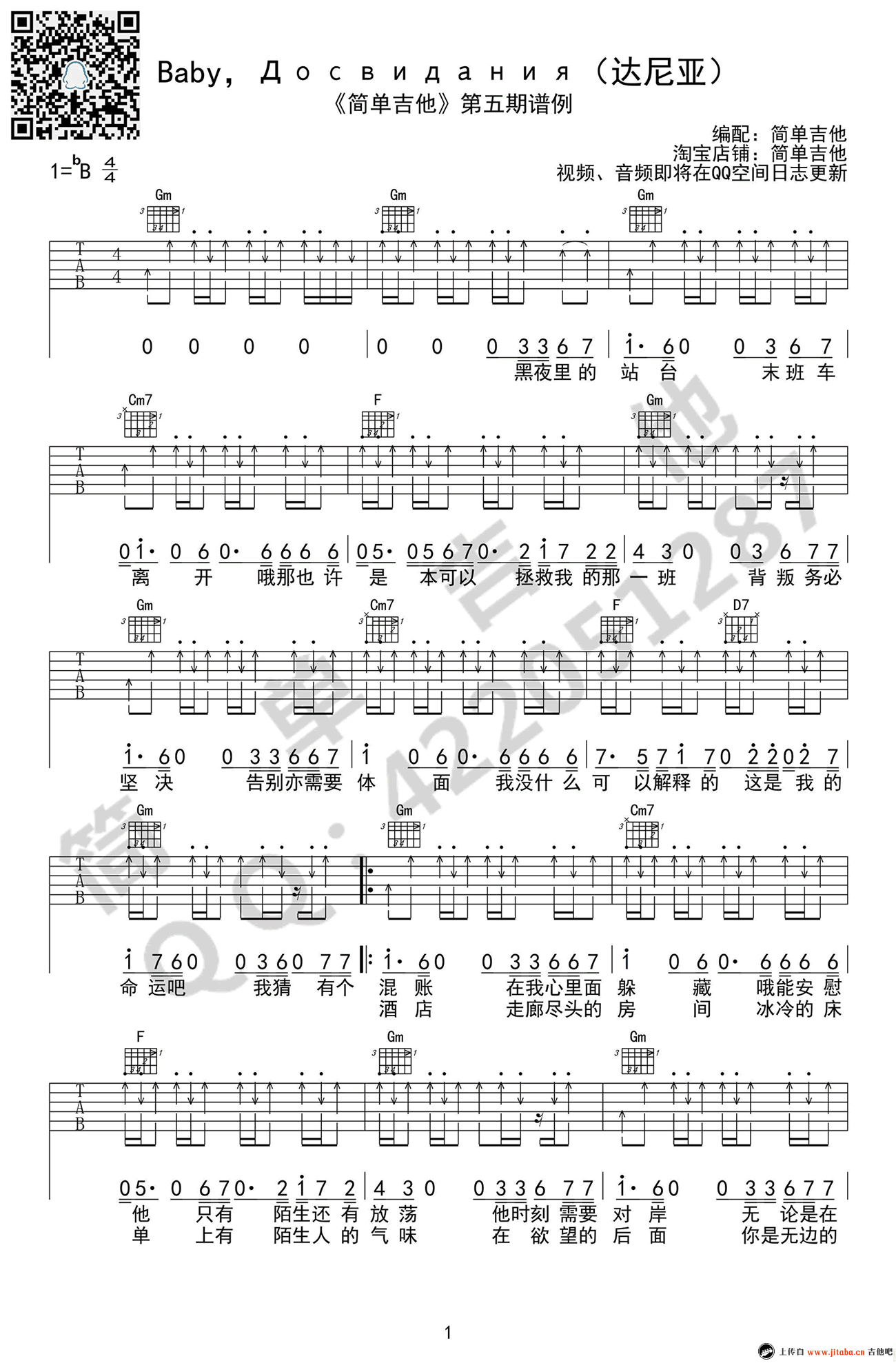 曲谱介绍: 朴树《baby达尼亚》吉他弹唱谱,采用B调指法编配,简单吉他编配出品,共有3张高清图谱。