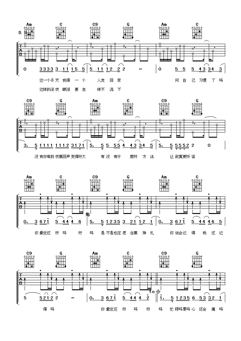 当前位置:琴谱网>吉他弹唱>你最近还好吗