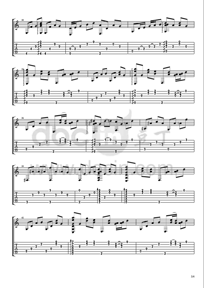 曲谱介绍: 走音《沐春阳》吉他独奏谱,采用D调指法编配,豆丁网编配出品,共有4张高清图谱。
