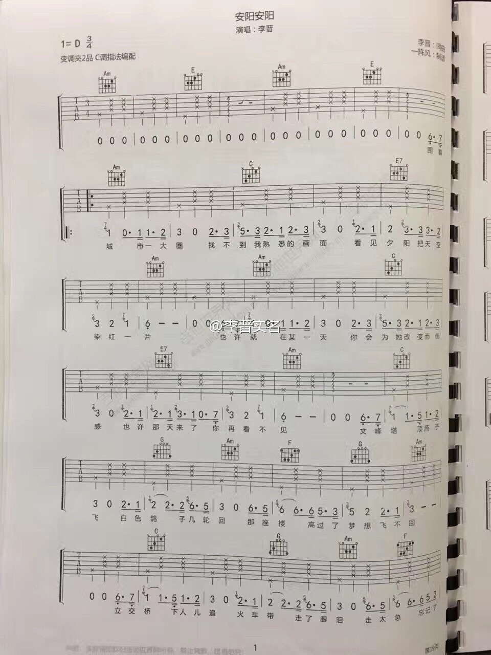 曲谱介绍: 李晋《安阳安阳》吉他弹唱谱,采用D调指法编配,李晋实名吉他编配出品,共有2张高清图谱,免翻页排版设计。