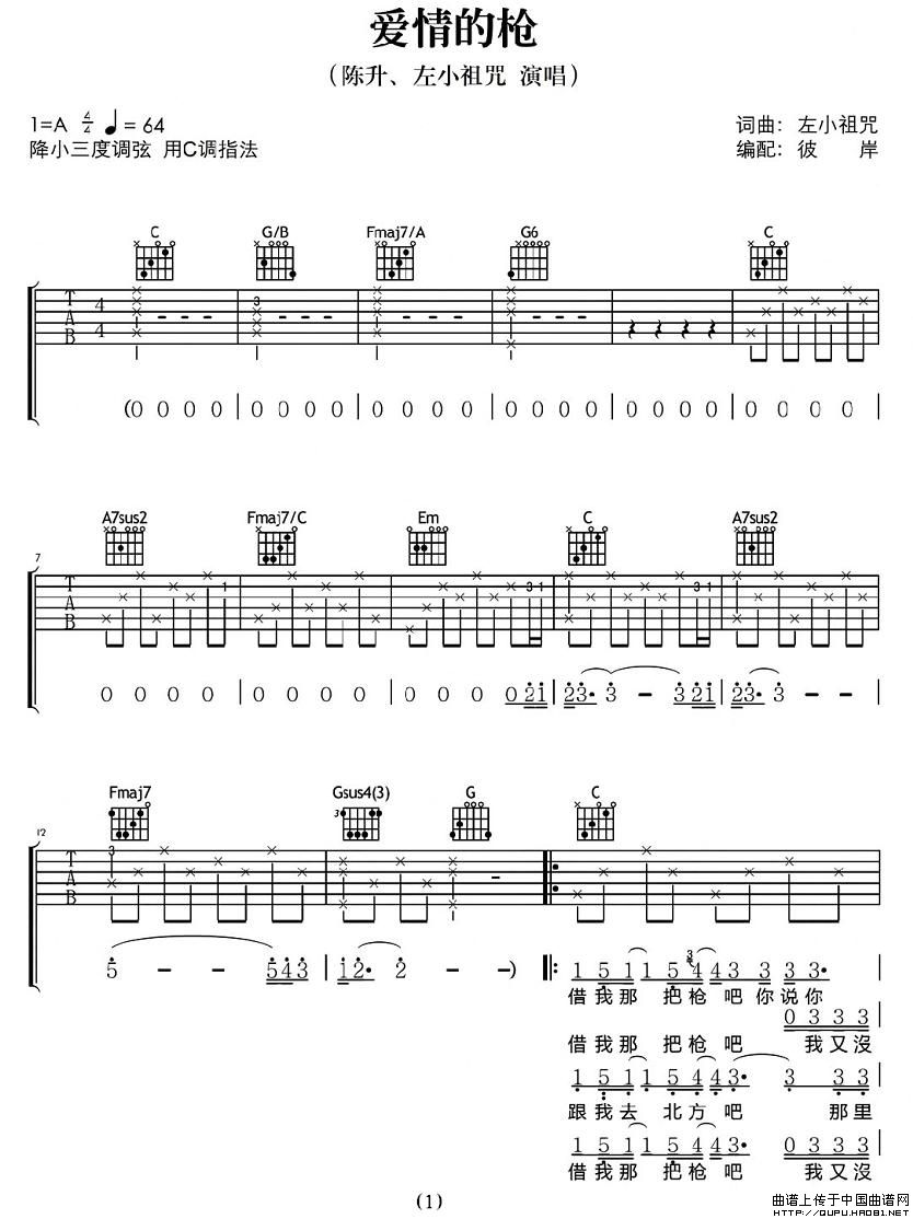 当前位置:琴谱网>吉他弹唱>爱情的枪