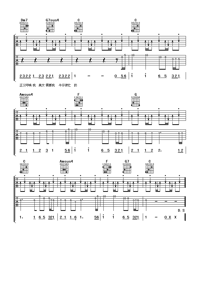 当前位置:琴谱网>吉他弹唱>牛仔很忙