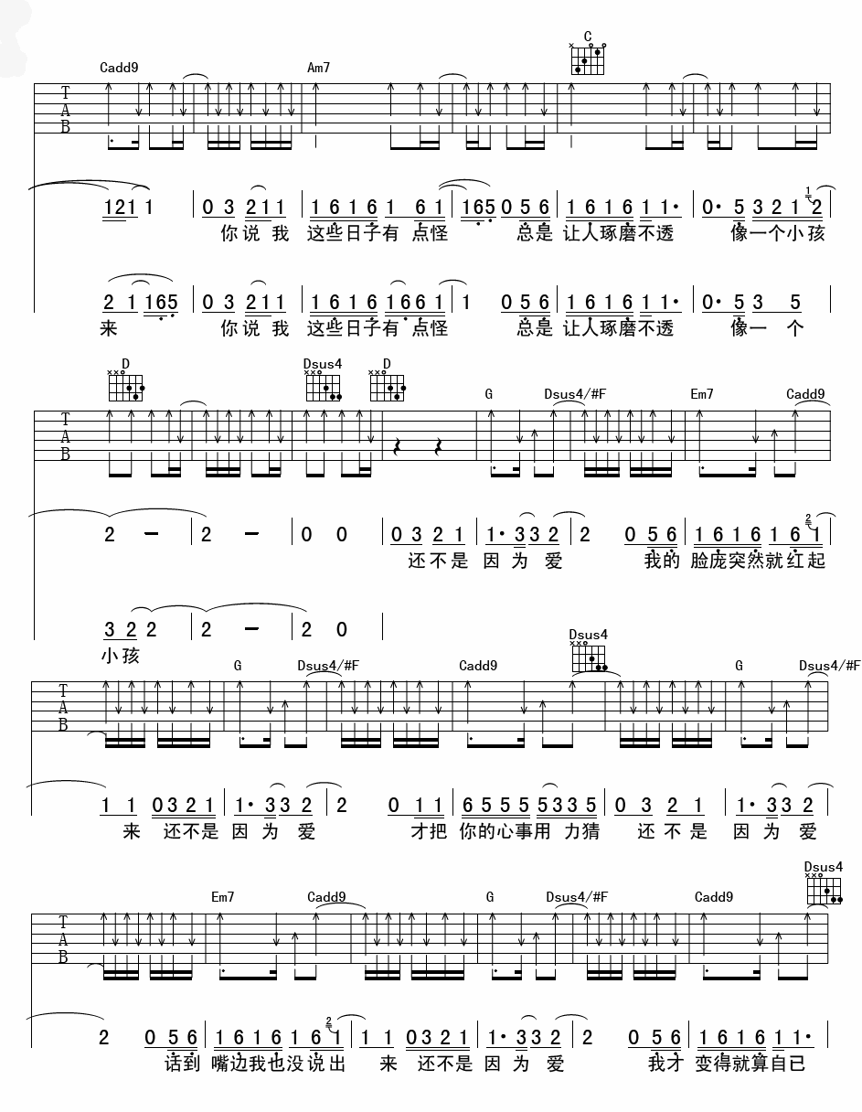 当前位置:琴谱网>吉他弹唱>还不是因为爱