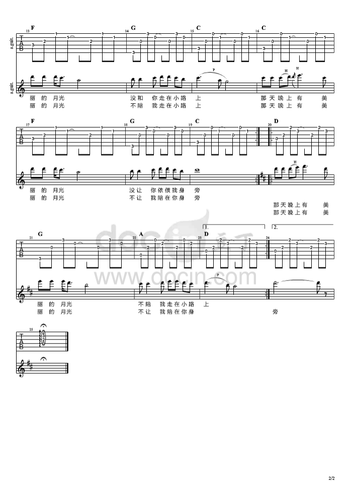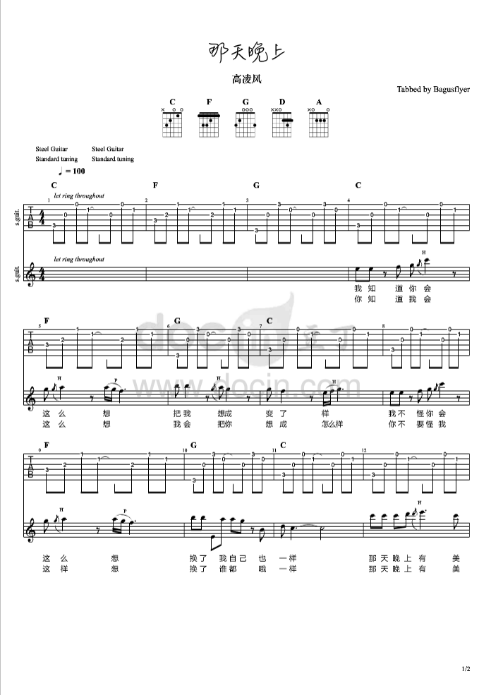 曲谱介绍: 高凌风《那天晚上》吉他弹唱谱,采用C调指法编配,豆丁网编配出品,共有2张高清图谱,免翻页排版设计。