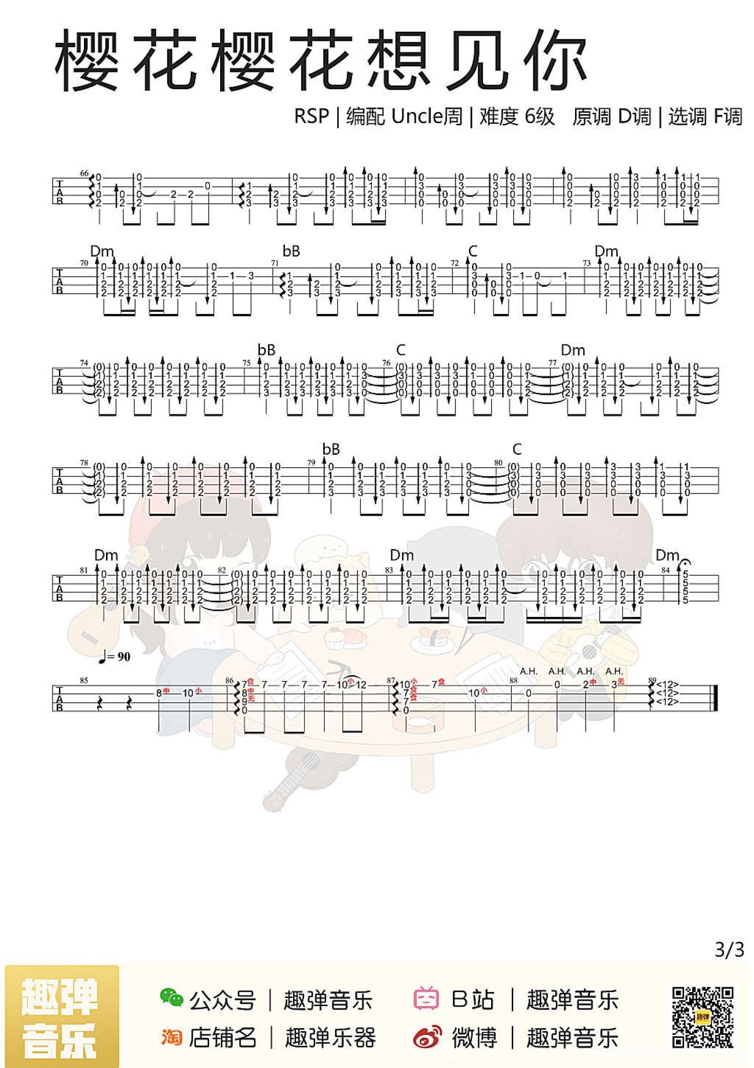 曲谱介绍: 樱花樱花想见你 指弹谱   樱花樱花想见你 弹唱谱