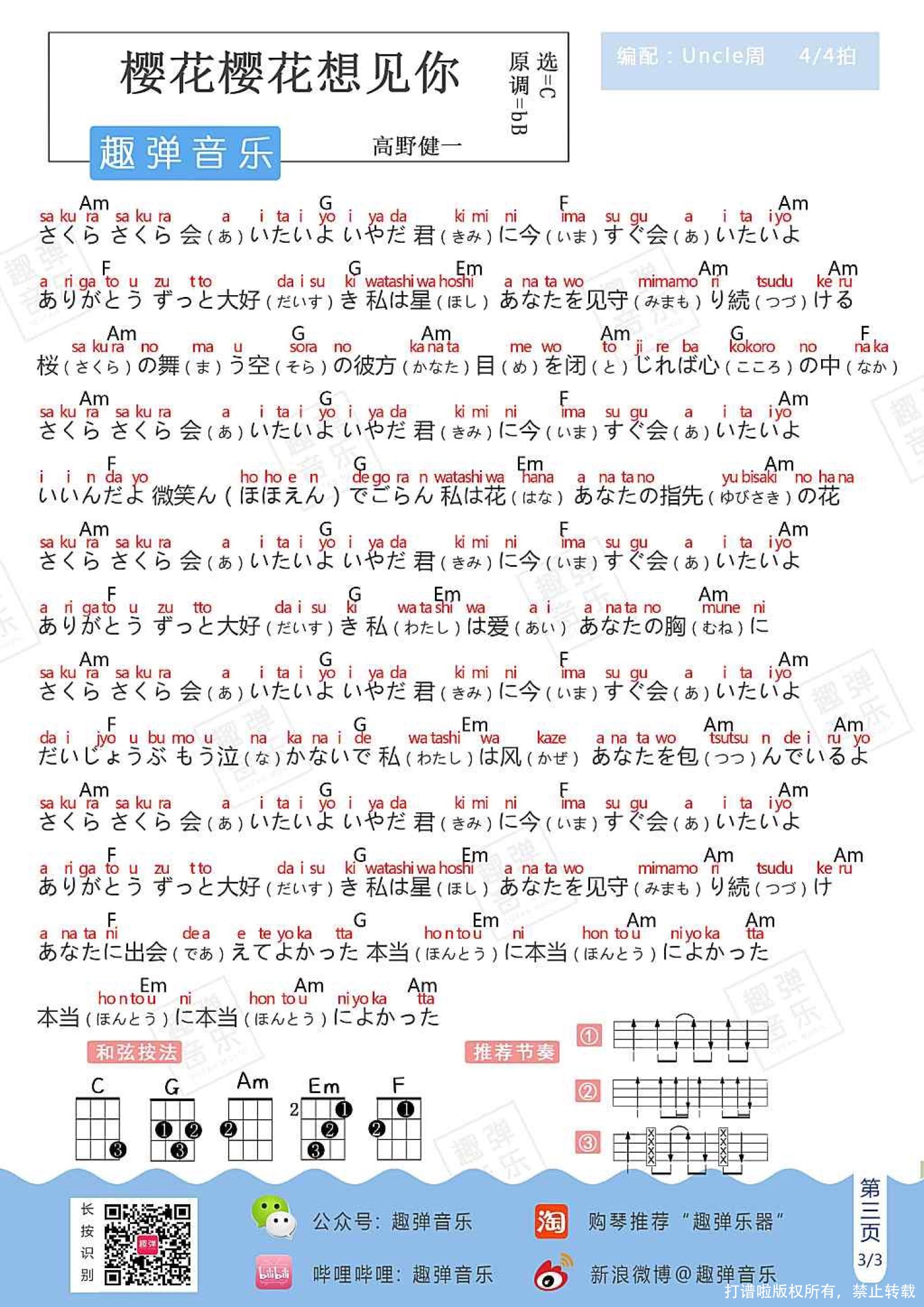 当前位置:琴谱网>尤克里里>樱花樱花想见你