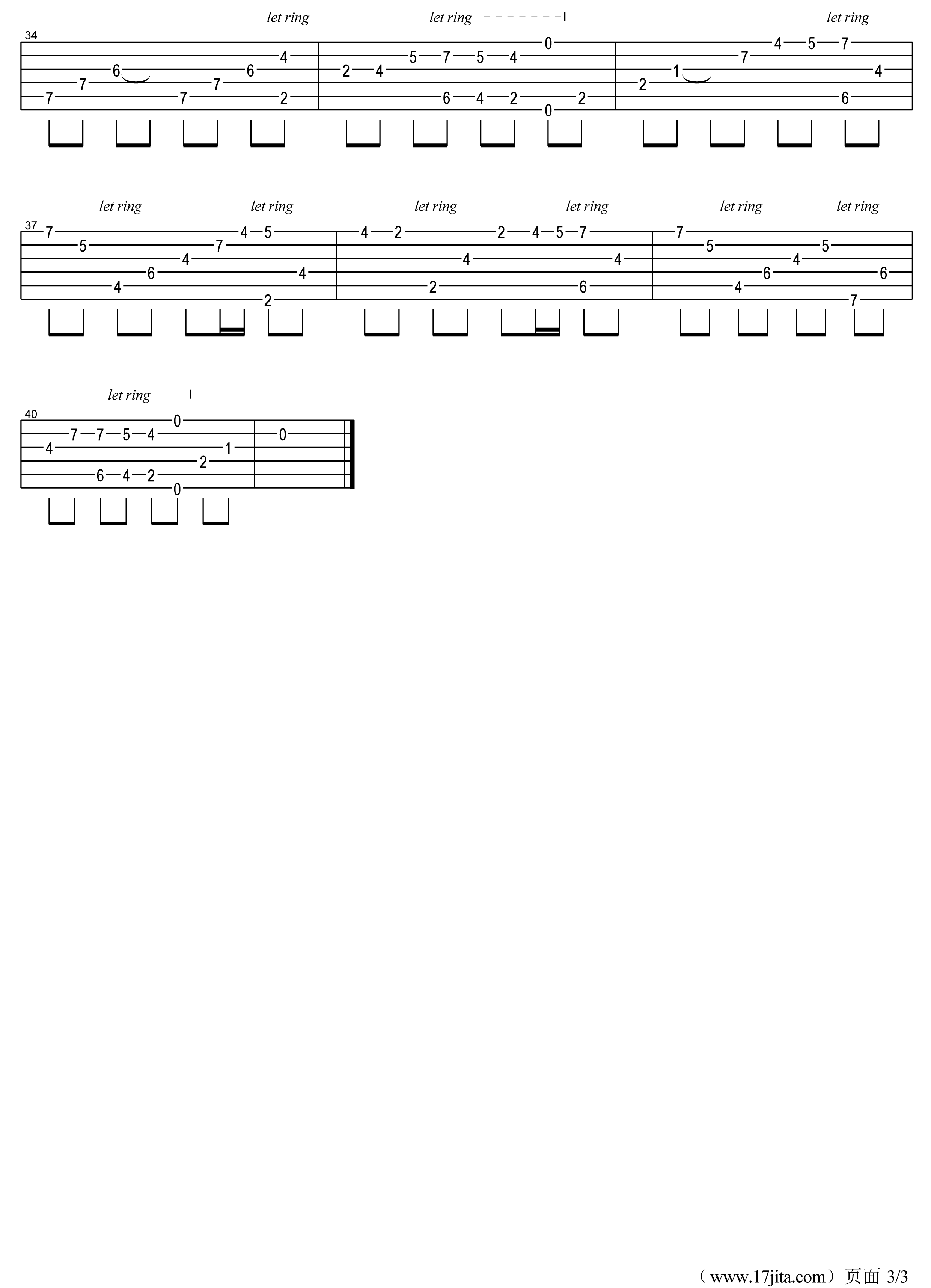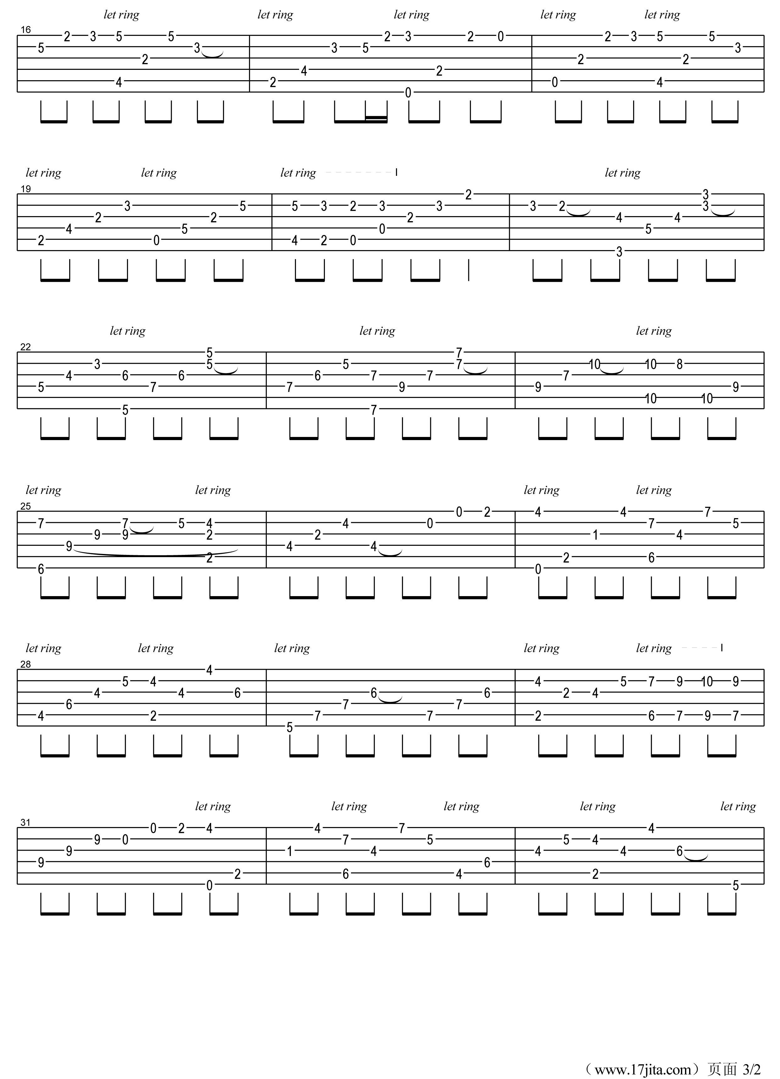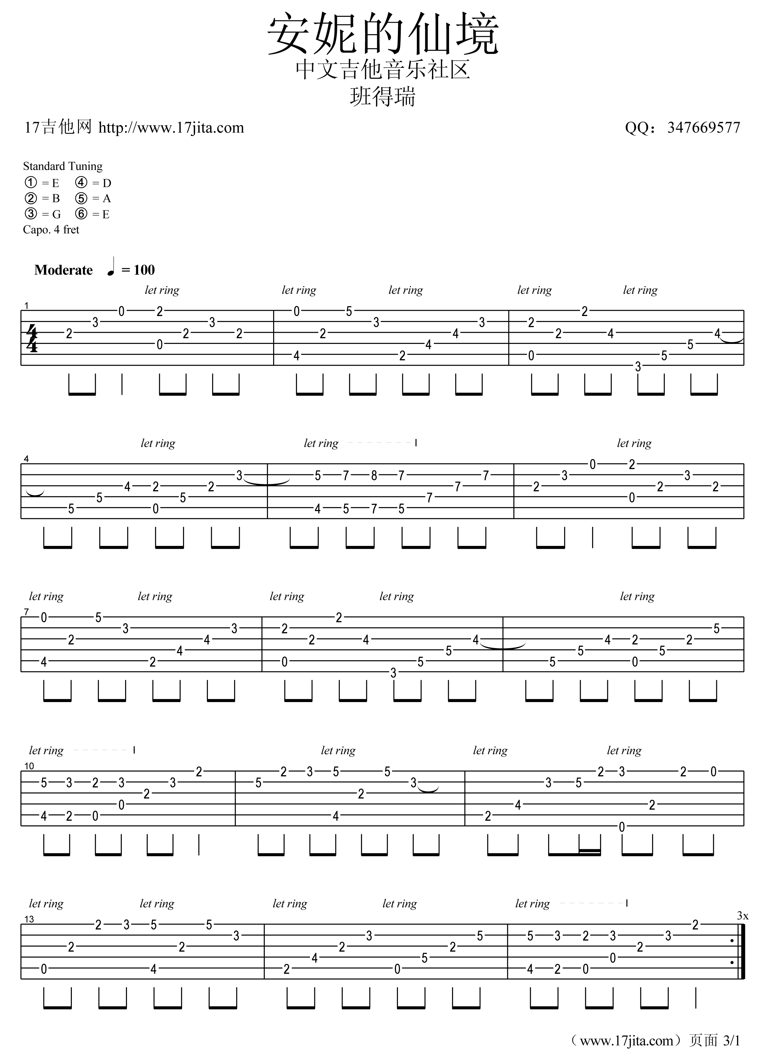 曲谱介绍: 班得瑞《安妮的仙境》吉他独奏谱,采用E调指法编配原版,17吉他编配出品,共有3张高清图谱。