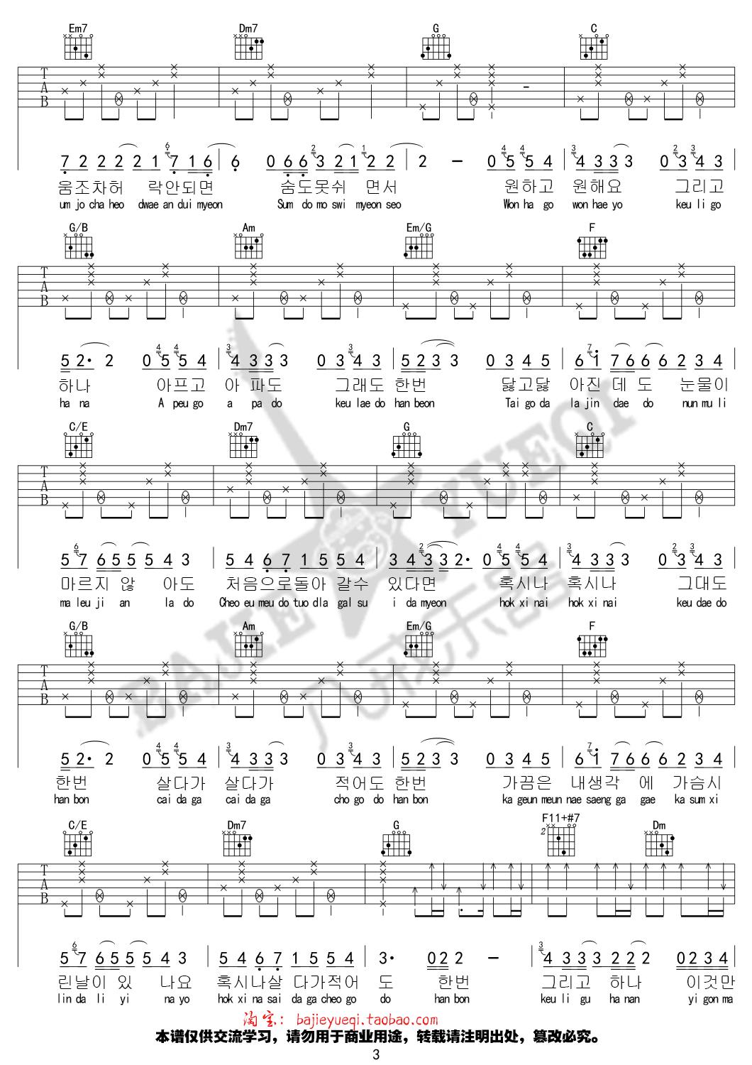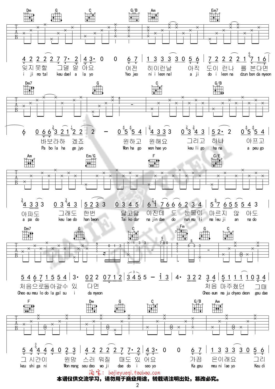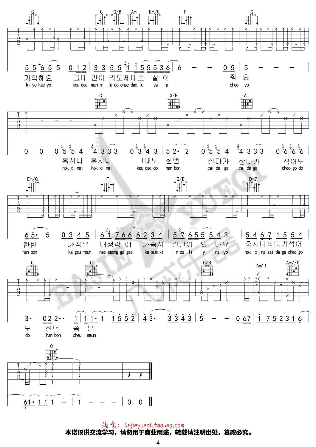 曲谱介绍: 金泰妍《还有一个》吉他弹唱谱,采用C调指法编配,八戒乐器编配出品,共有4张高清图谱。
