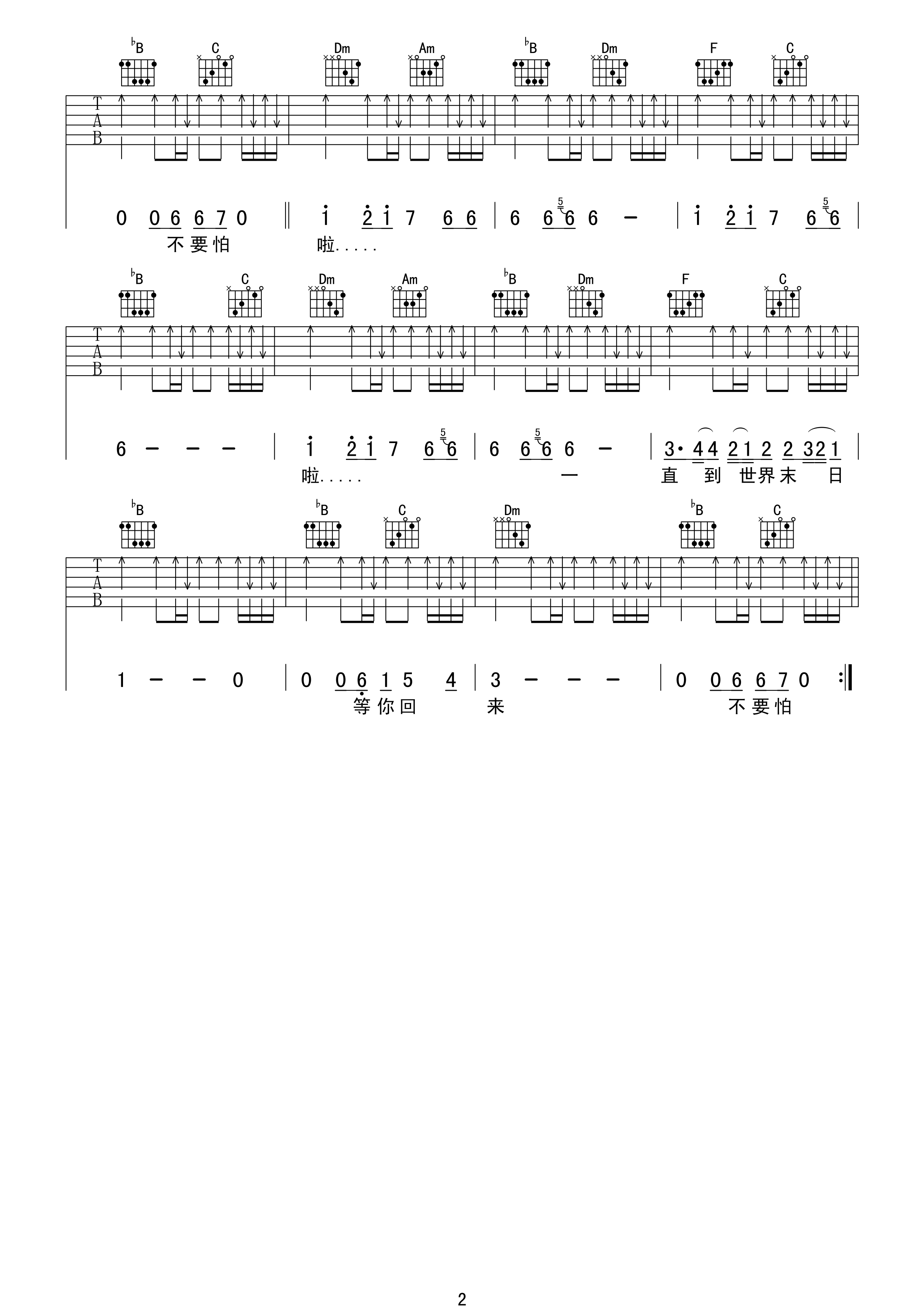 曲谱介绍: 齐秦《直到世界末日》吉他弹唱谱,采用F调指法编配,17吉他编配出品,共有2张高清图谱,免翻页排版设计。