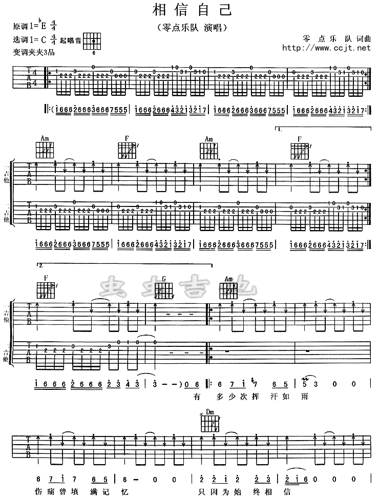 相信自己吉他谱 - 零点乐队 - C调吉他弹唱谱