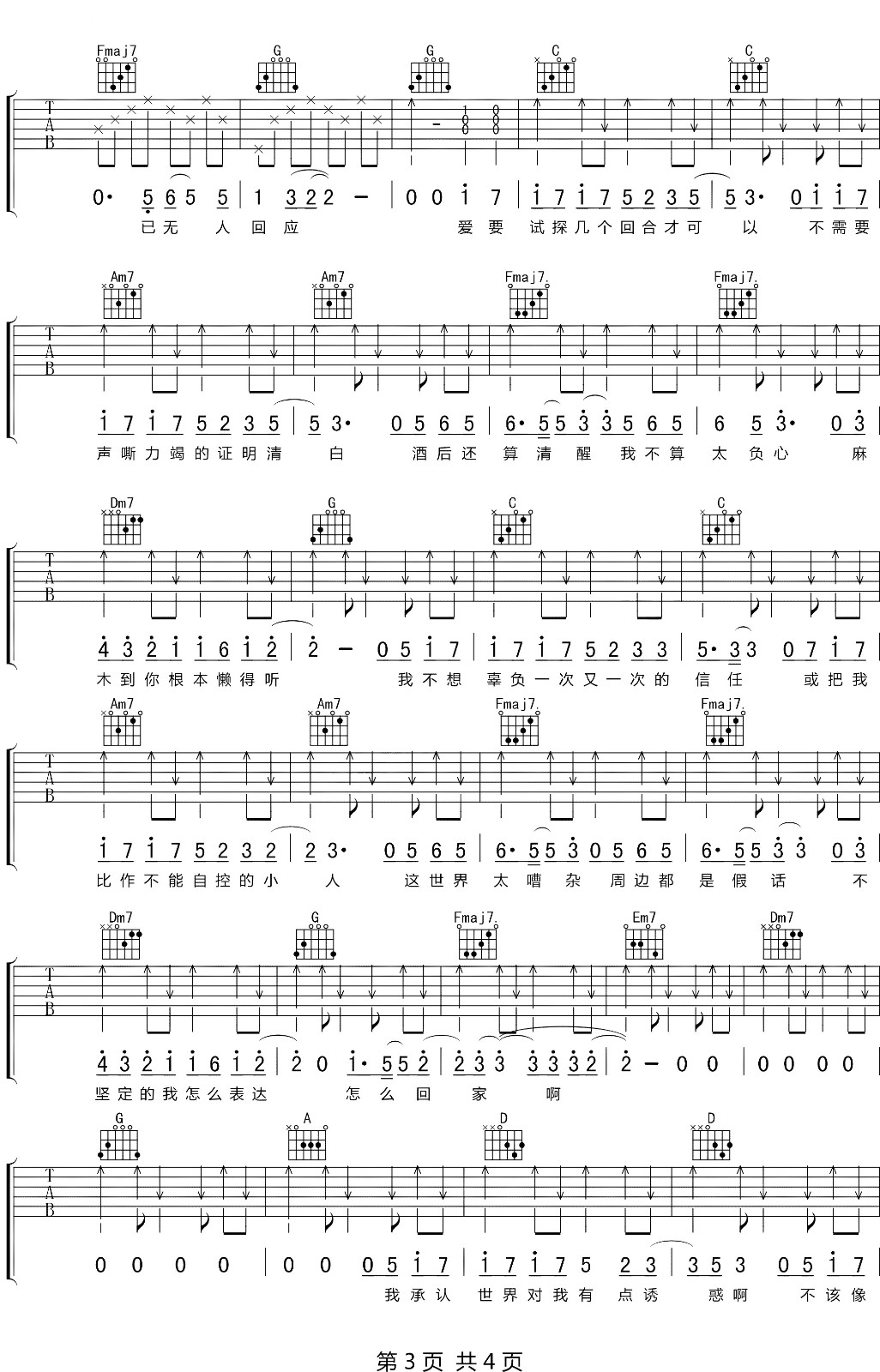 曲谱介绍: 附前奏《等我回家》吉他弹唱谱,采用D调指法编配,共有4张高清图谱。