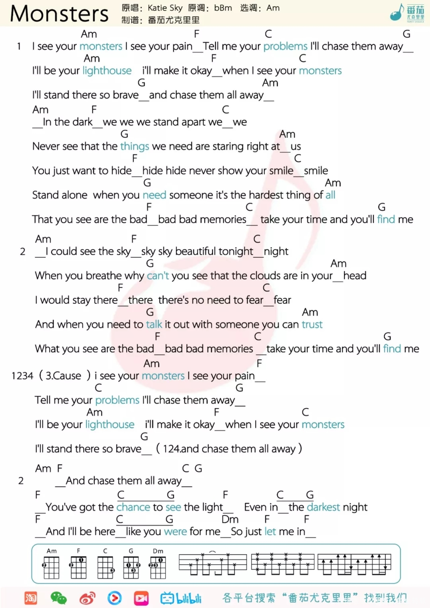 Monsters尤克里里谱 - Katie Sky