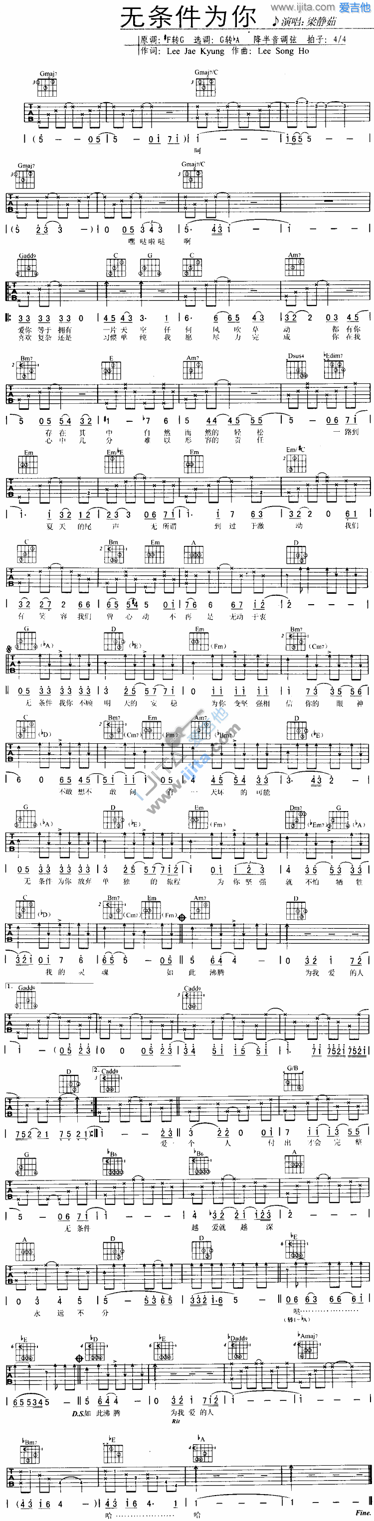 当前位置:琴谱网>吉他弹唱>无条件为你