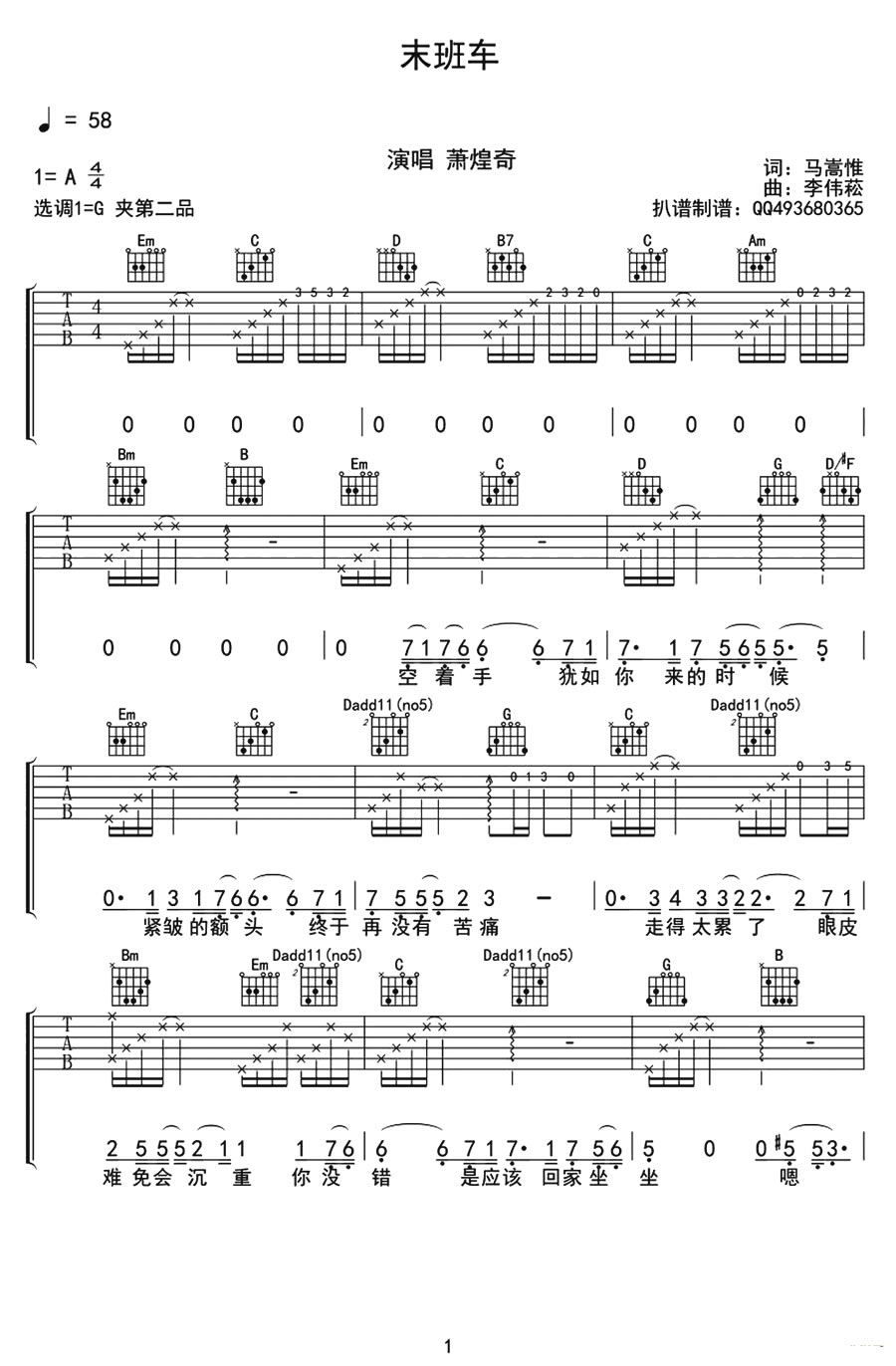 当前位置:琴谱网>吉他弹唱>未班车