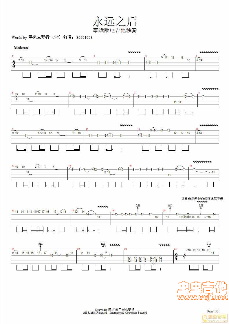 曲谱介绍: 李斌《永远之后》吉他独奏谱,虫虫吉他编配出品,共有3张高清图谱。