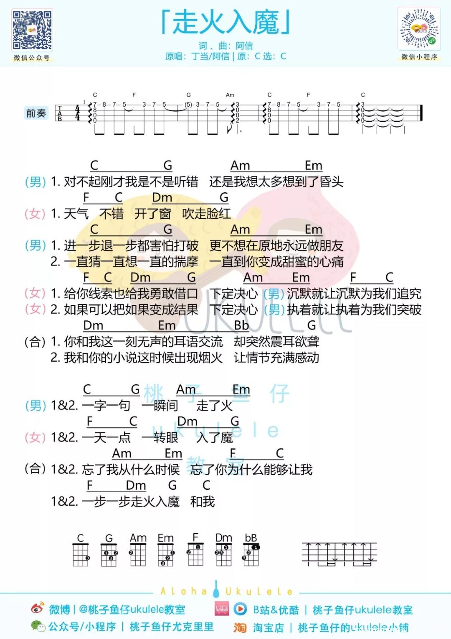 走火入魔尤克里里谱 - 阿信 / 丁当