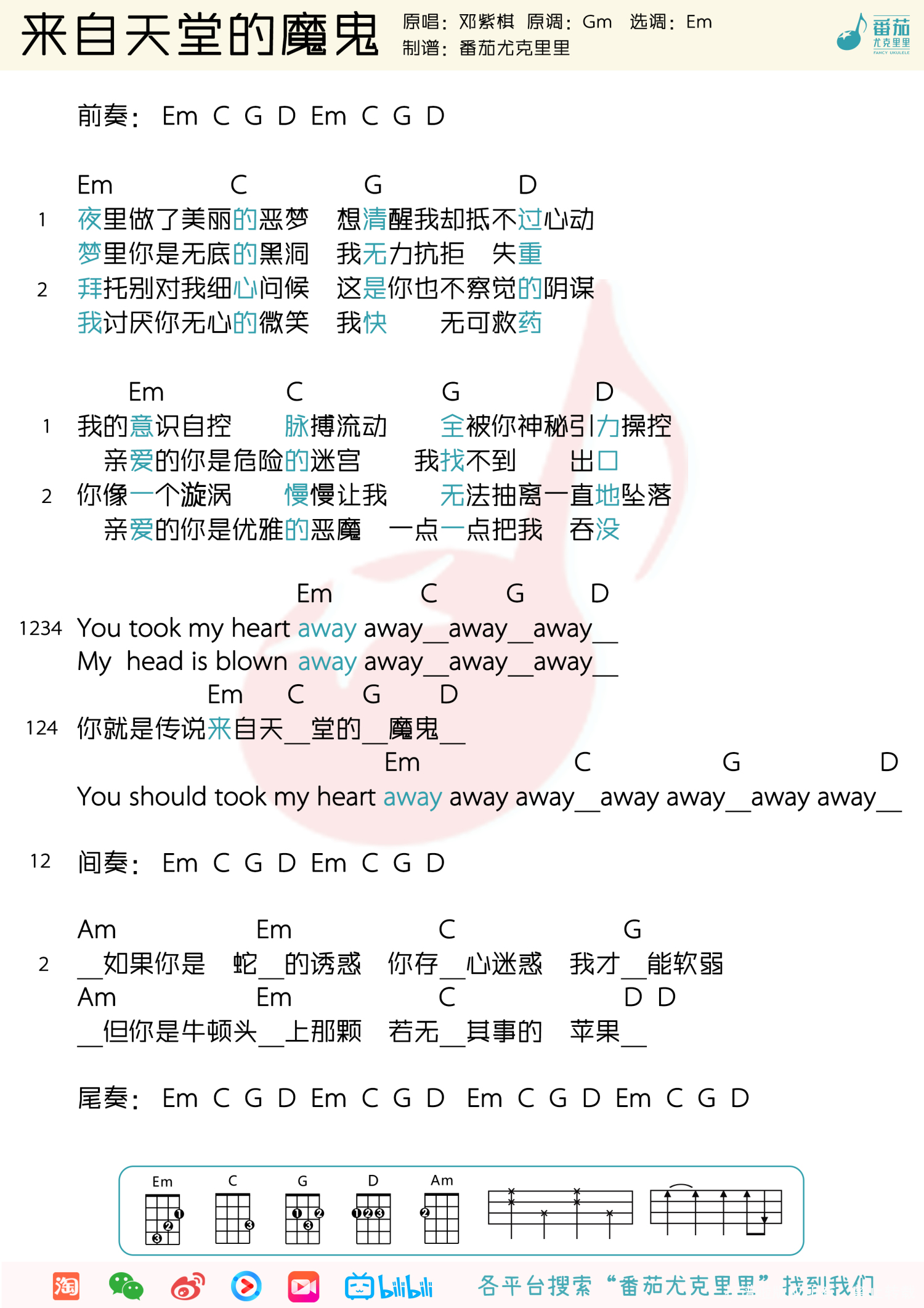 来自天堂的魔鬼尤克里里谱 - 邓紫棋