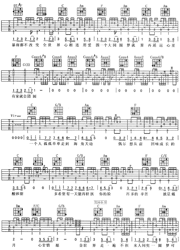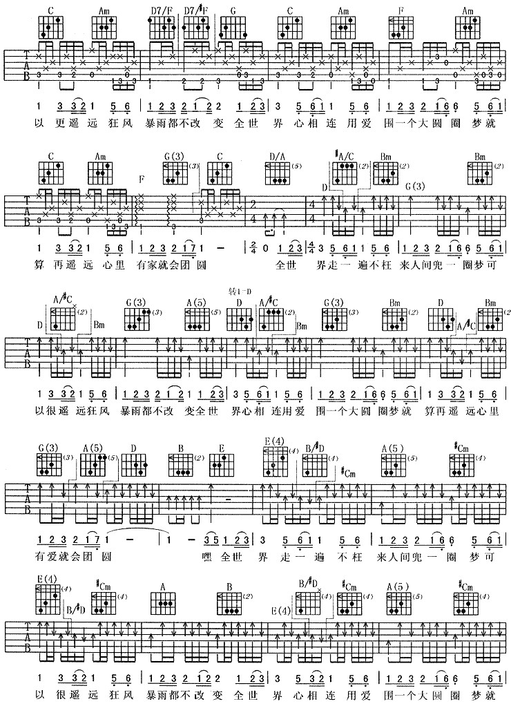曲谱介绍: 巫启贤《团圆》吉他弹唱谱,采用C调指法编配,共有4张高清图谱。