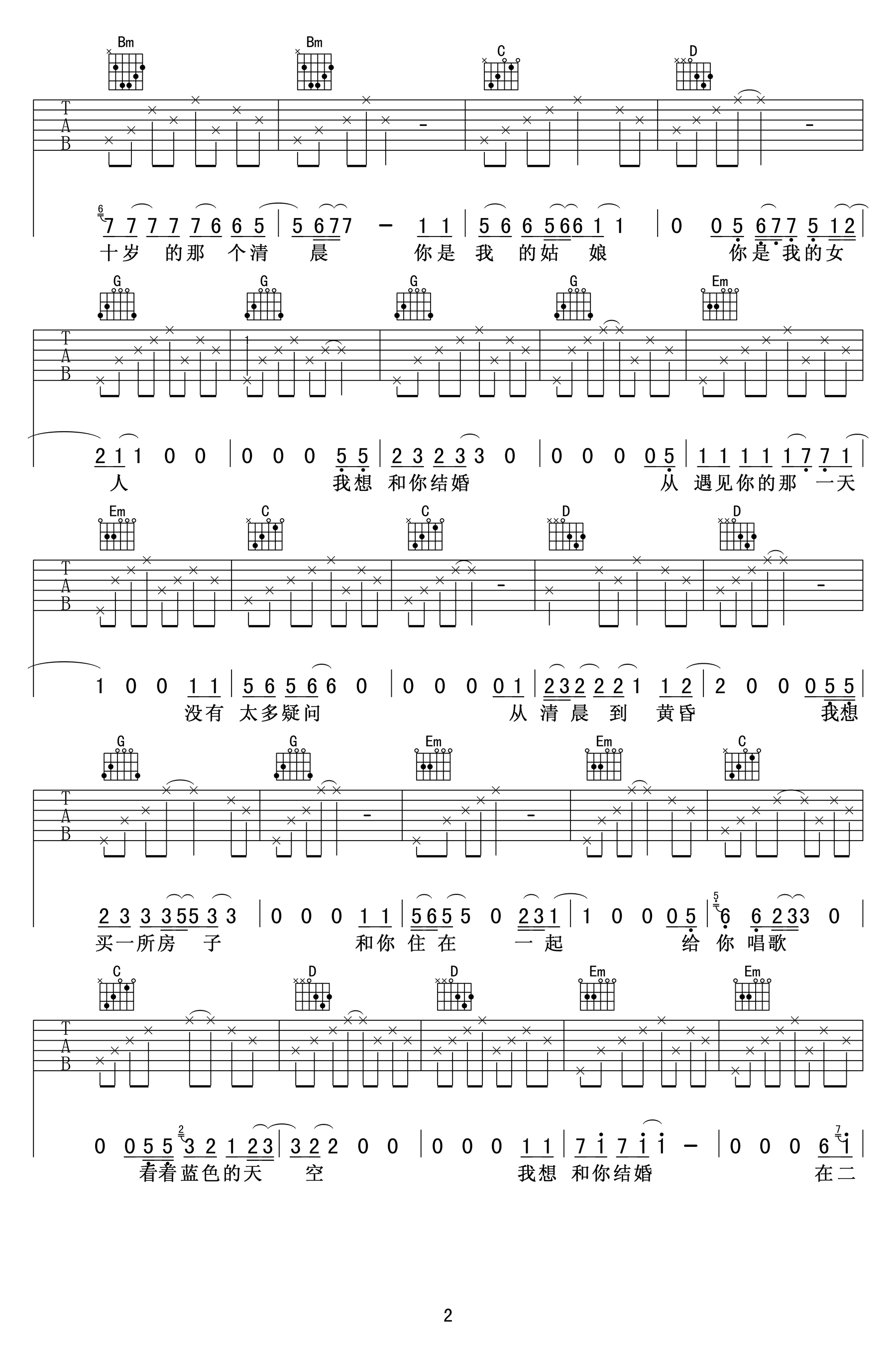 当前位置:琴谱网>吉他弹唱>我想和你结婚