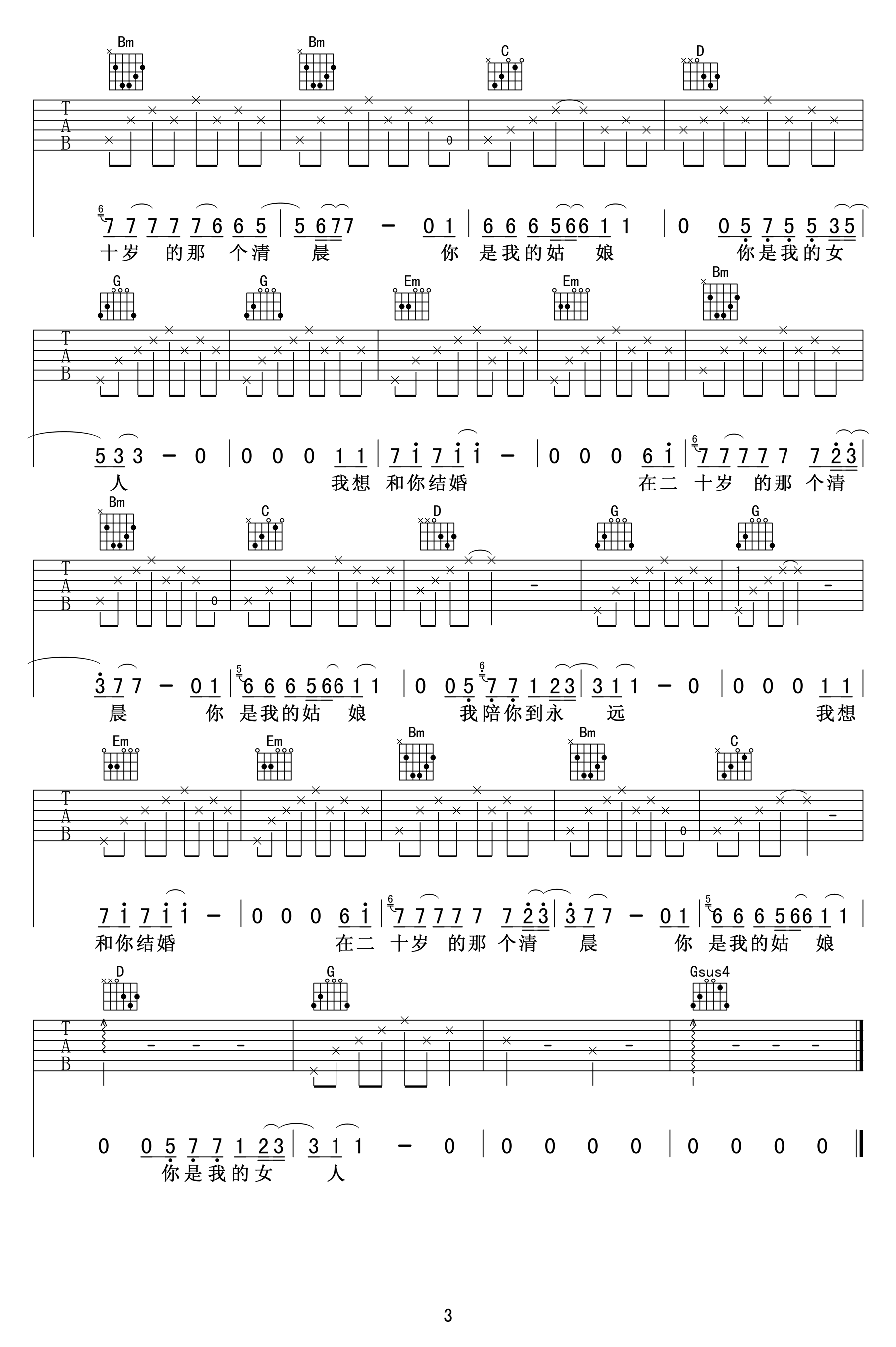 曲谱介绍: 刘卓彦《我想和你结婚》吉他弹唱谱,采用A调指法编配,小宁吉他教室编配出品,共有3张高清图谱。
