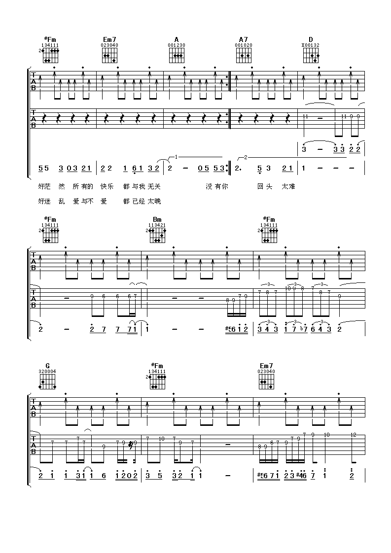 吉他弹唱D调来源:阿潘音乐工场231 浏览2024-01-21 16:37发布图谱共4页