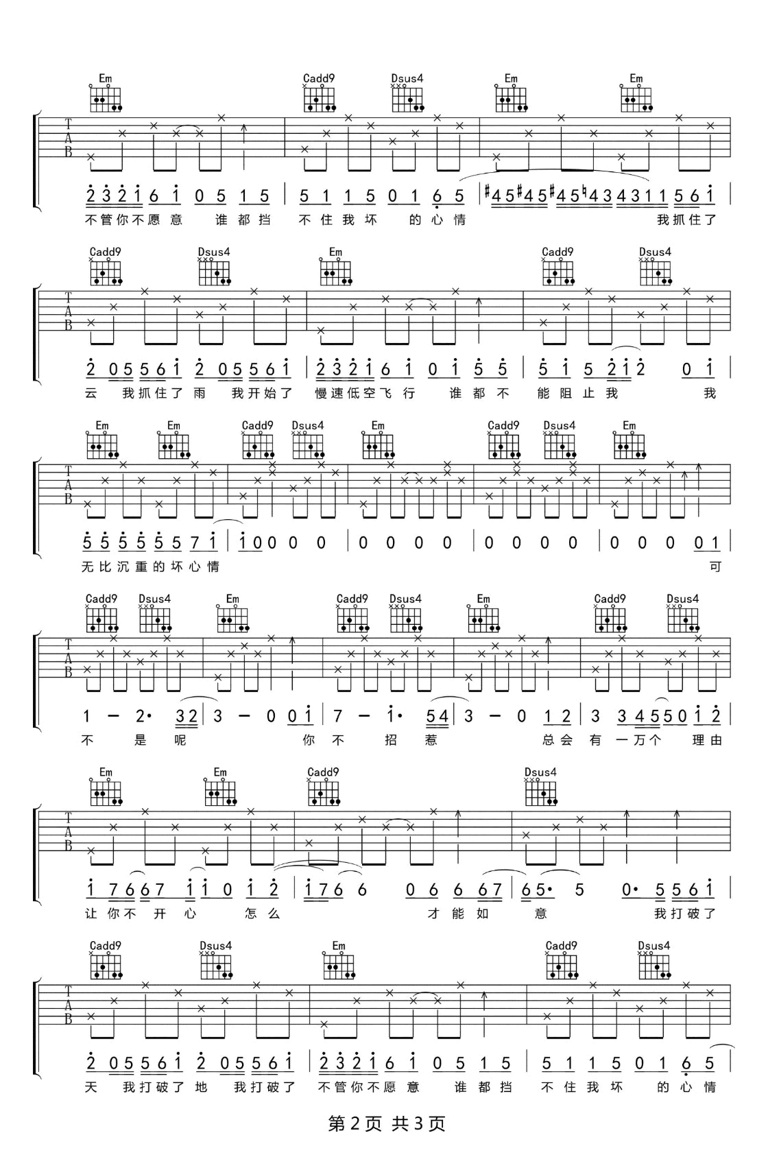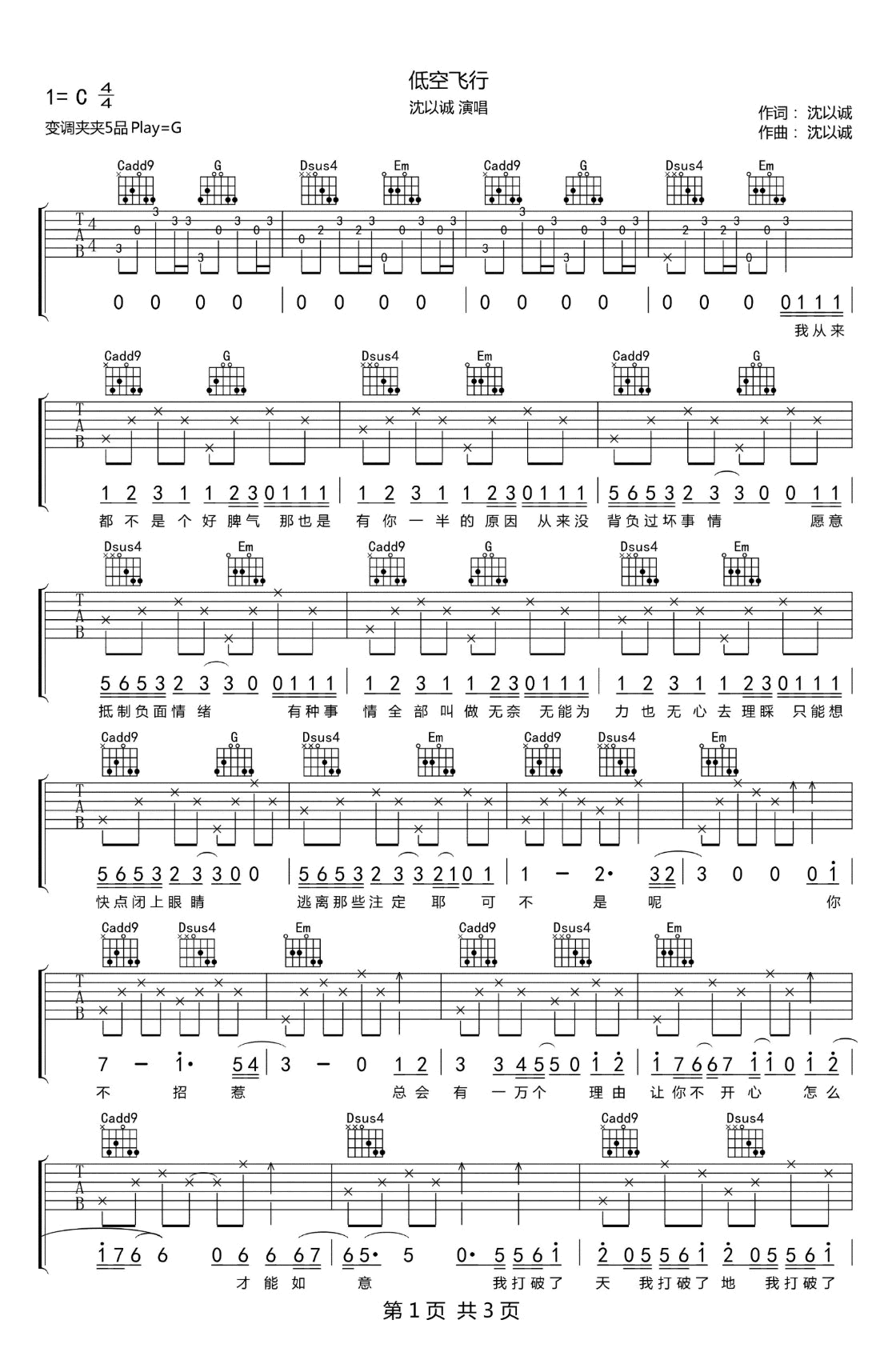 曲谱介绍: 附前奏《低空飞行》吉他弹唱谱,采用C调指法编配,共有3张高清图谱。