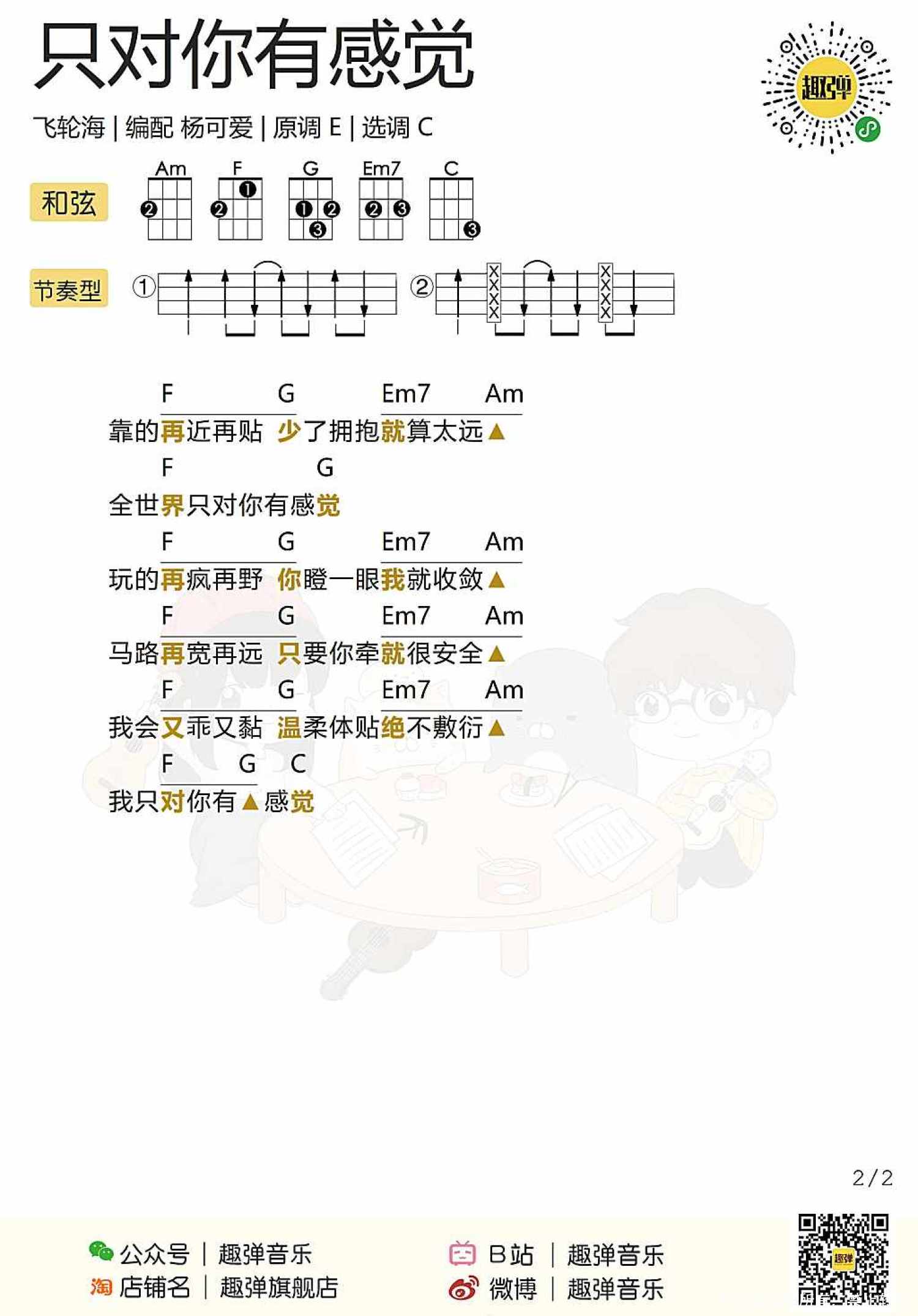 曲谱介绍: 弹唱演示 弹唱教学 「只对你有感觉」尤克里里谱 目录 Aloha~ 今天可爱教大家一首 非常经典的小情歌 听一遍就会喜欢上~ 飞轮海&田馥甄的「只对你有感觉」   弹唱演示   弹唱教学   「只对你有感觉」尤克里里谱