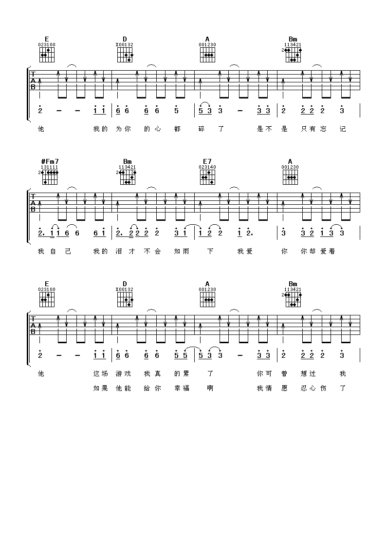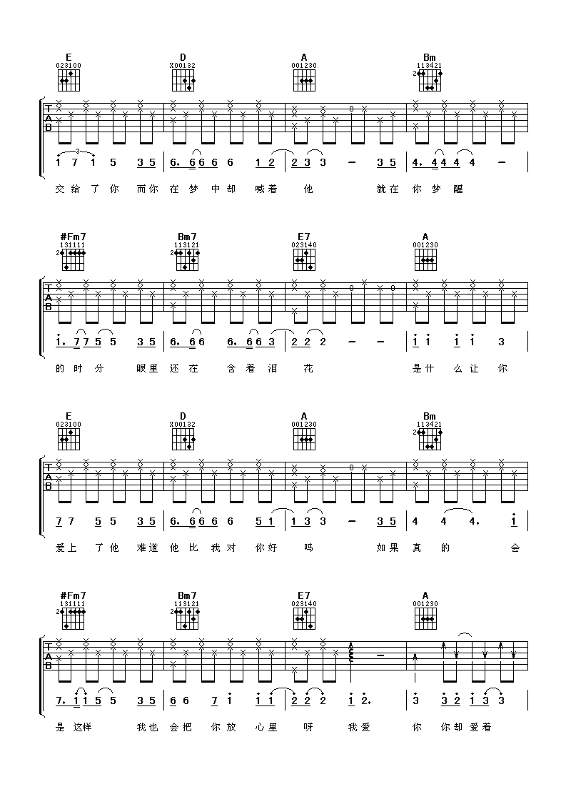 我爱你你却爱着他吉他谱 - 黑龙 - A调吉他弹唱谱
