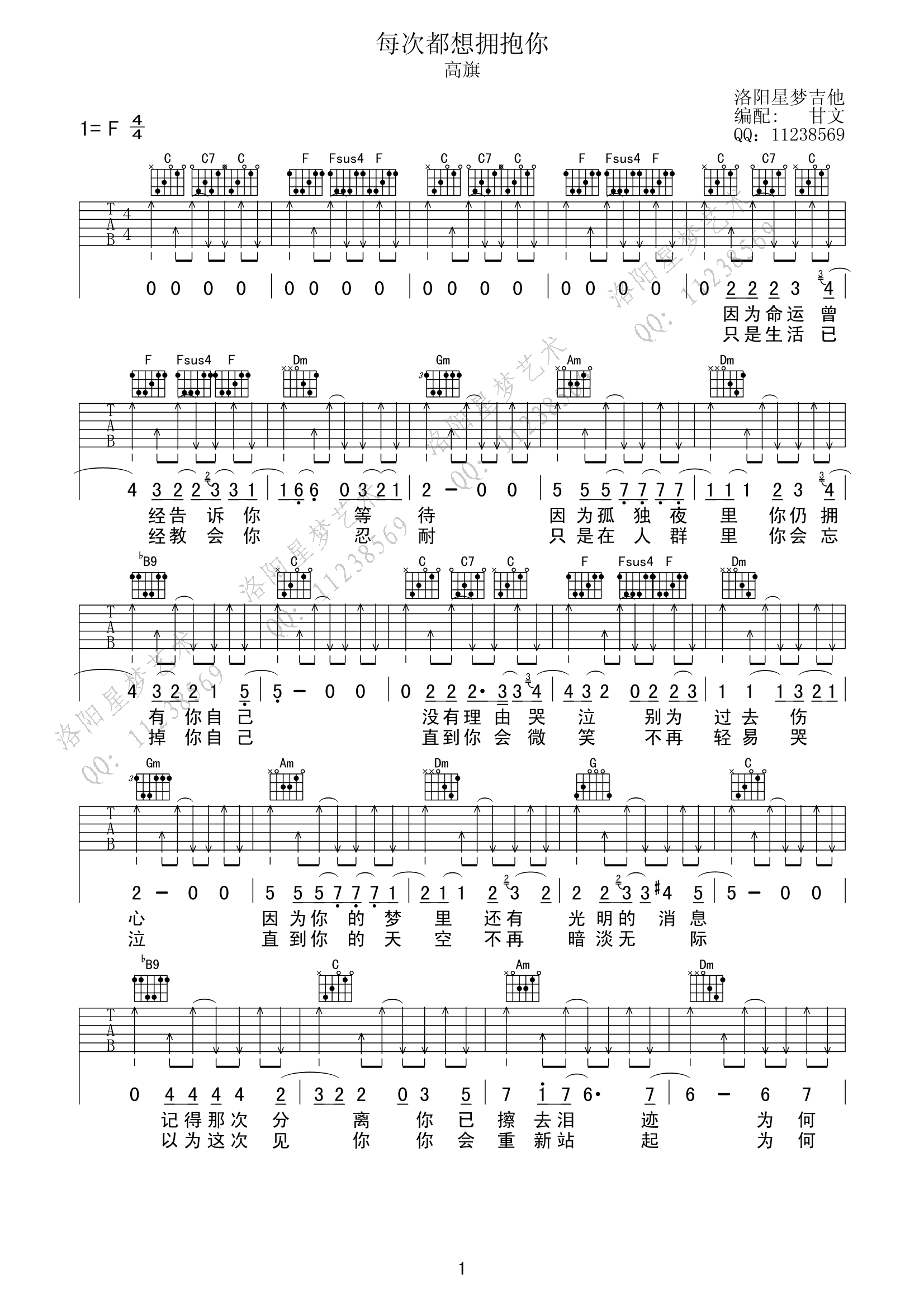 每次都想拥抱你吉他谱 - 高旗 - F调吉他弹唱谱