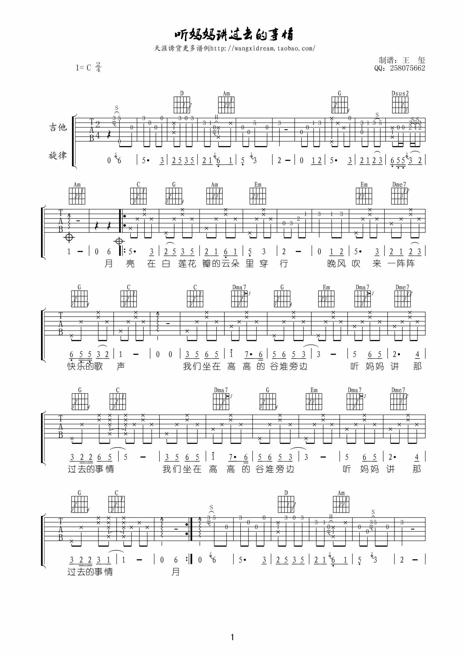 当前位置:琴谱网>吉他弹唱>听妈妈讲那过去的事情