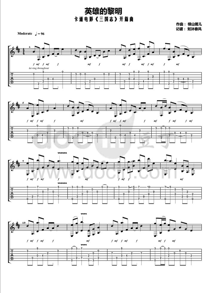 曲谱介绍: 横山菁児《英雄的黎明》吉他独奏谱,豆丁网编配出品,共有4张高清图谱。