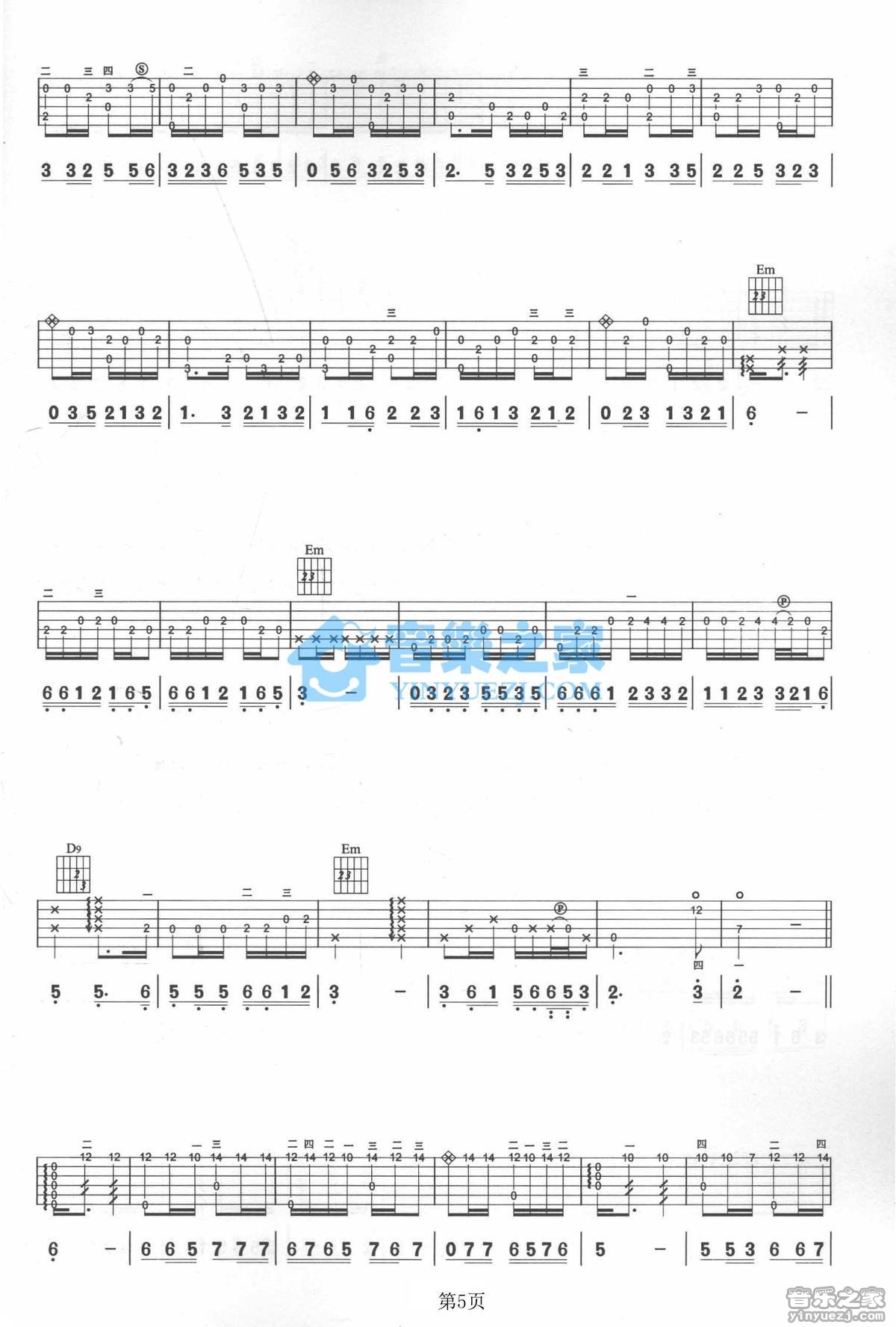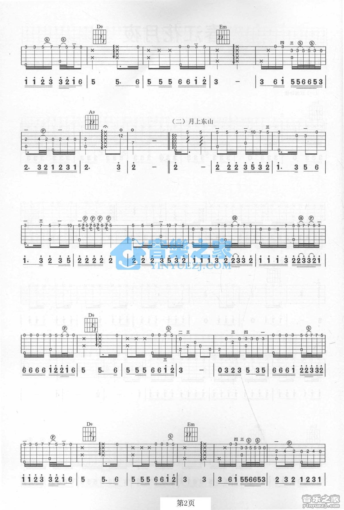 曲谱介绍: 殷彪《春江花月夜》吉他独奏谱,采用G调指法编配,音乐之家编配出品,共有9张高清图谱。