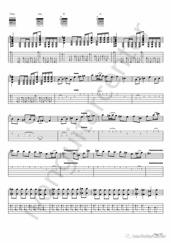 曲谱介绍: 陈亮《鲸歌》吉他独奏谱,采用E调指法编配,共有10张高清图谱。