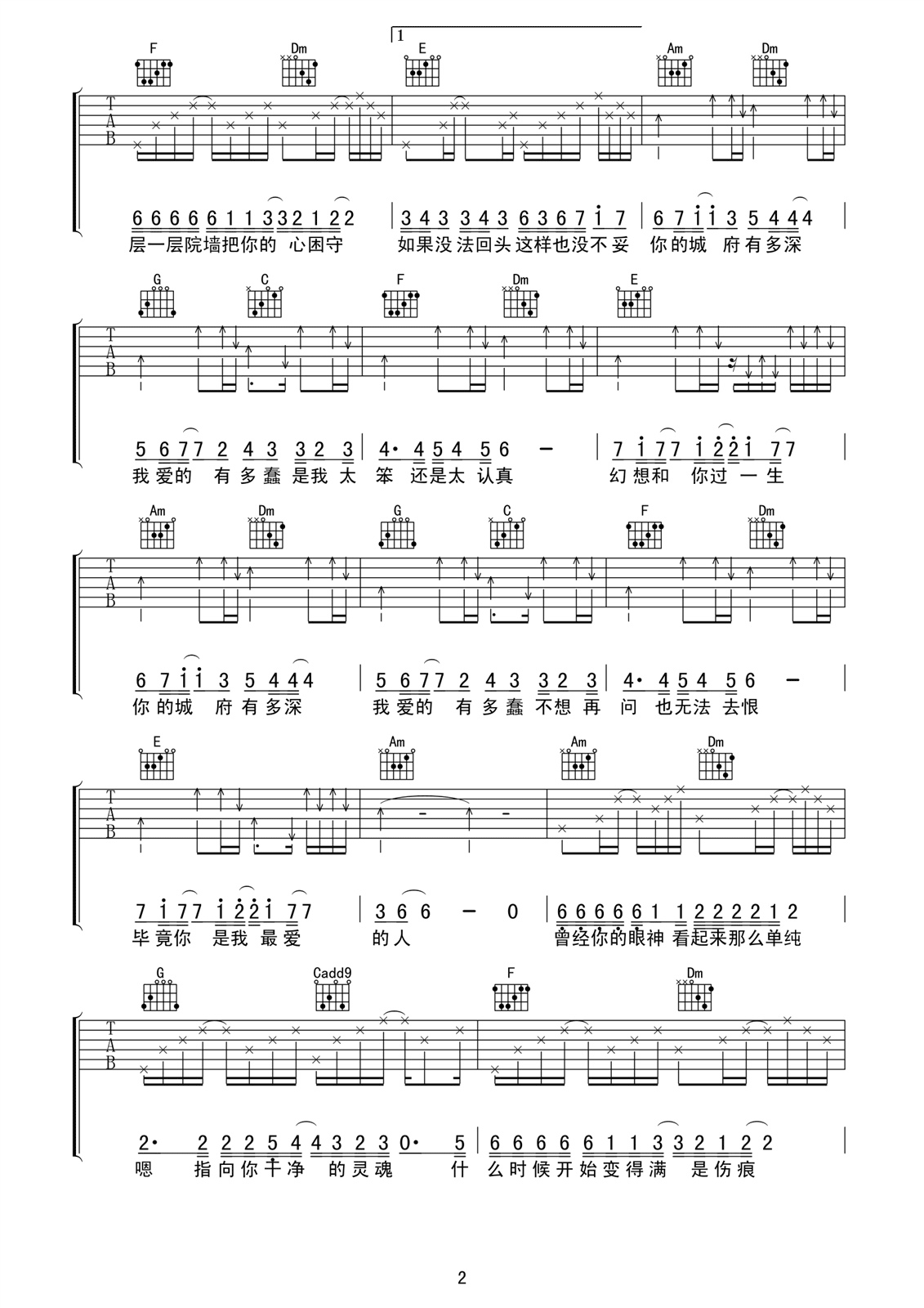 当前位置:琴谱网>吉他弹唱>城府