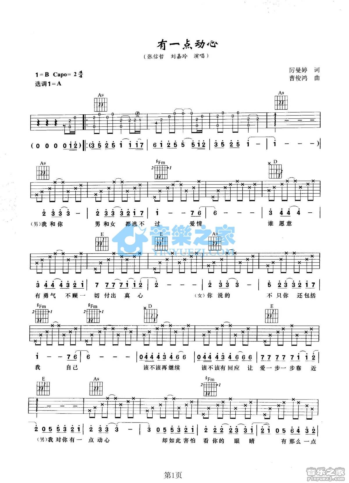 当前位置:琴谱网>吉他弹唱>有一点动心