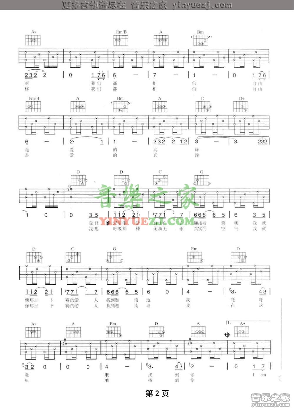 当前位置:琴谱网>吉他弹唱>Free