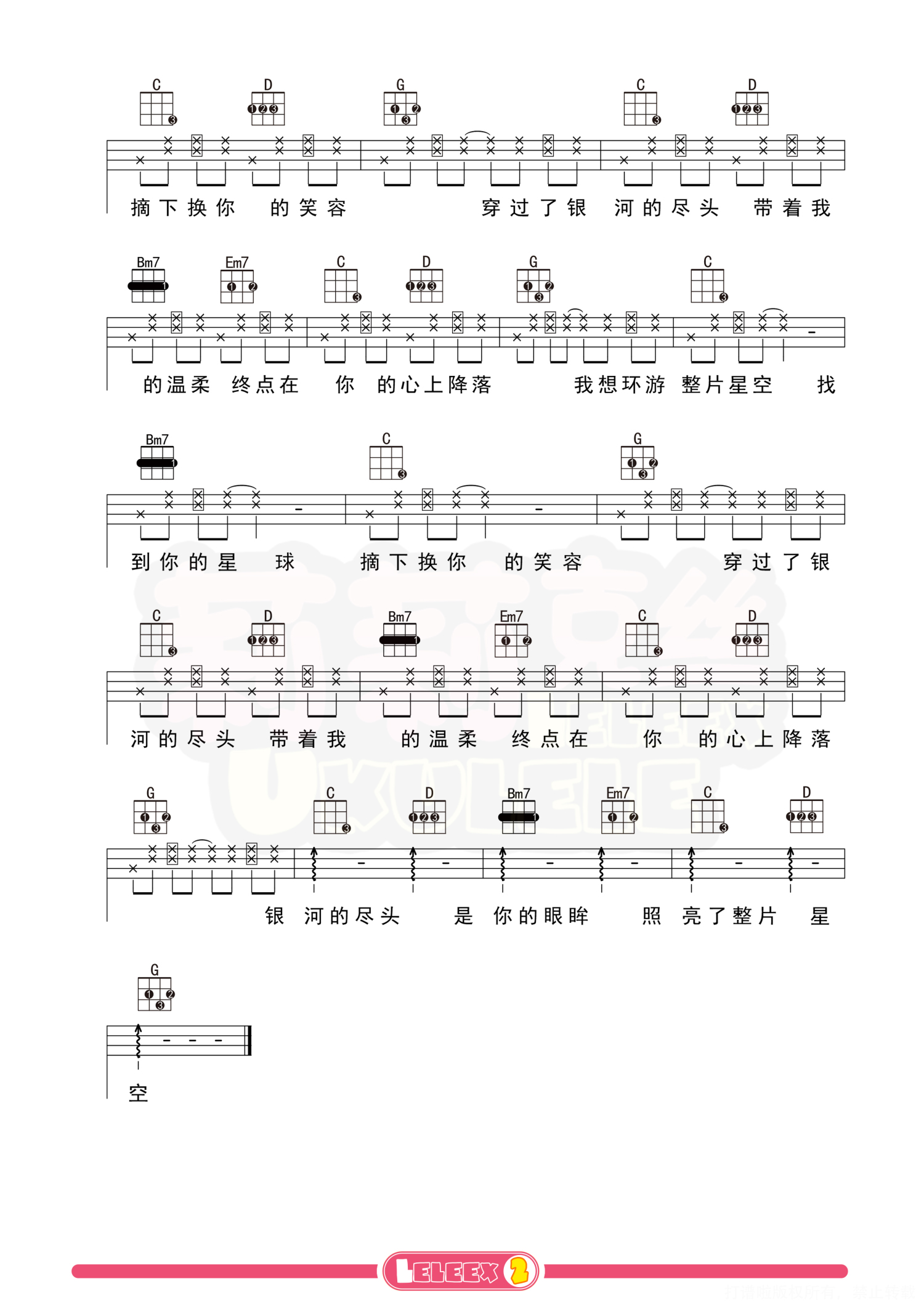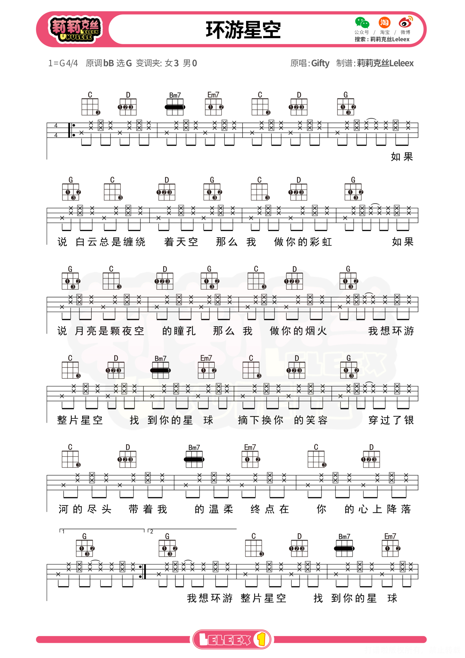 曲谱介绍: 「环游星空」弹唱示范   「环游星空」弹唱教学   曲谱 更多尤克里里曲谱/教学 关注@莉莉克丝Leleex