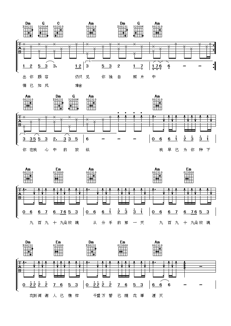当前位置:琴谱网>吉他弹唱>九百九十九朵玫瑰