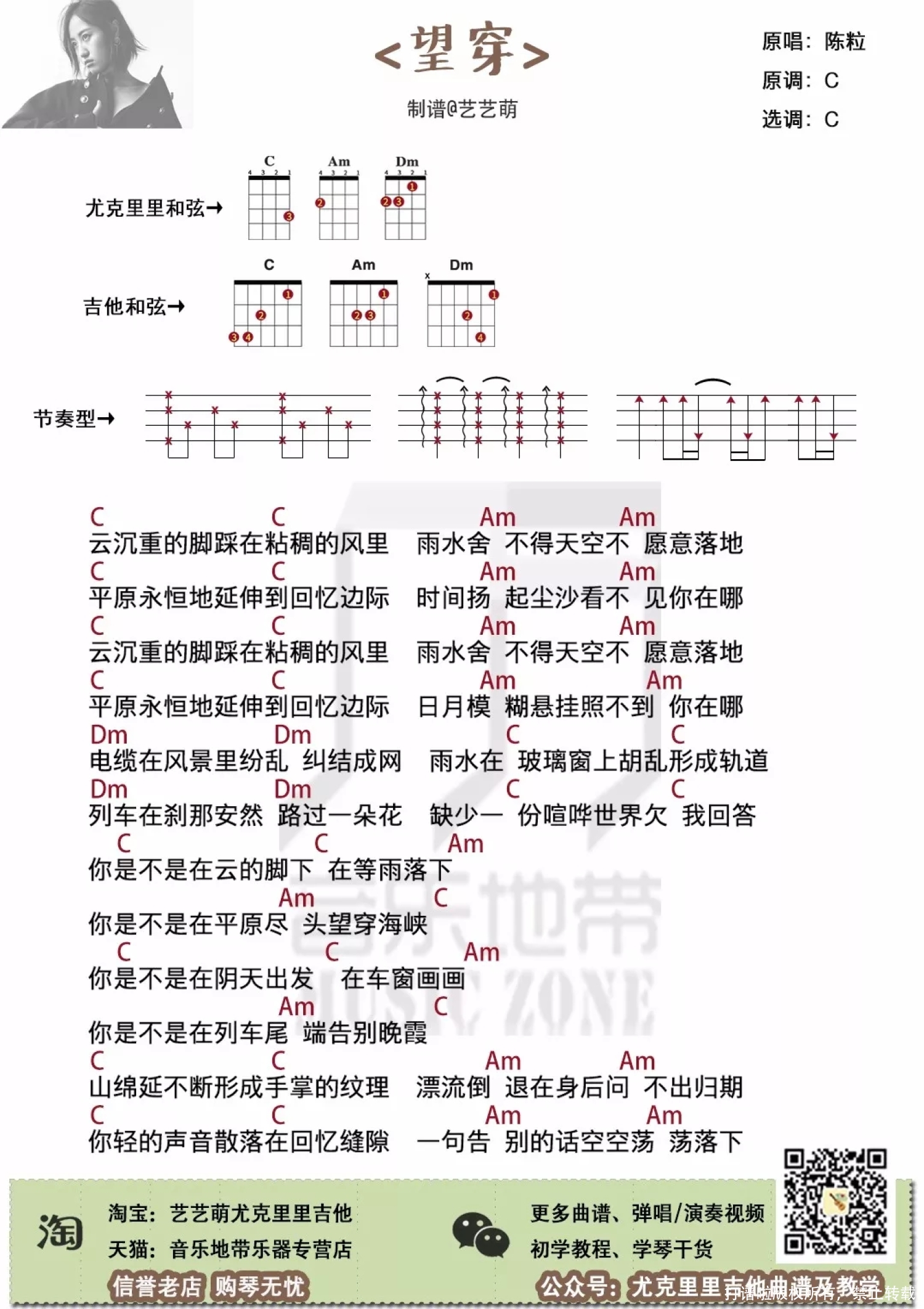 曲谱介绍: 陈粒弹唱视频   「望穿」弹唱谱