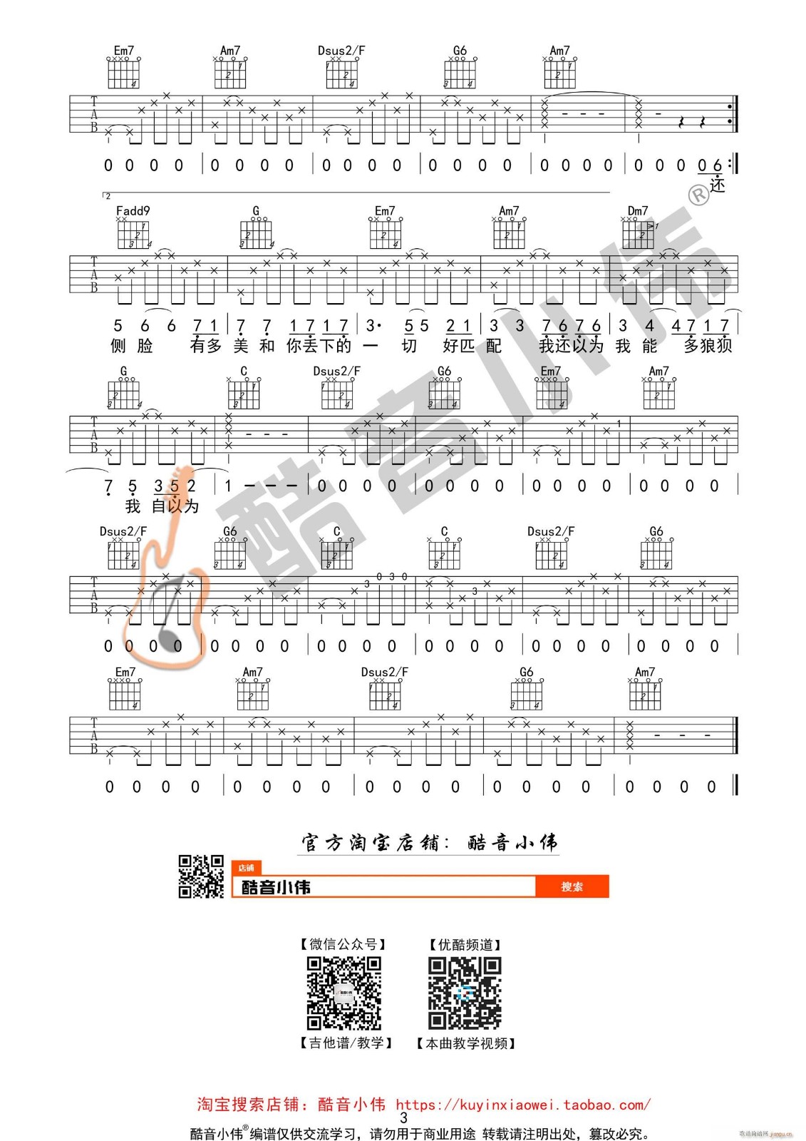 吉他弹唱C调来源:酷音小伟106 浏览2024-01-21 19:19发布图谱共3页