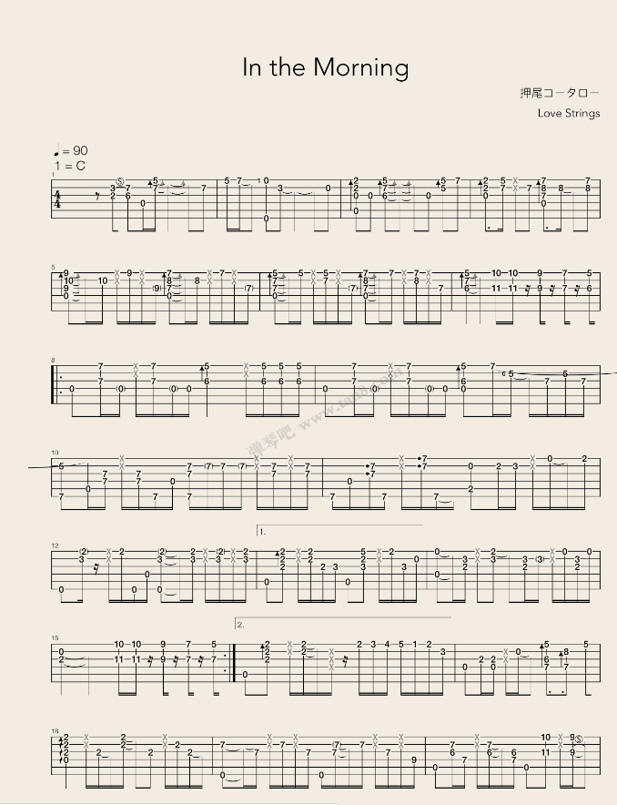 曲谱介绍: in《inthemorning》吉他独奏谱,采用C调指法编配原版,豆丁编配出品,共有4张高清图谱。