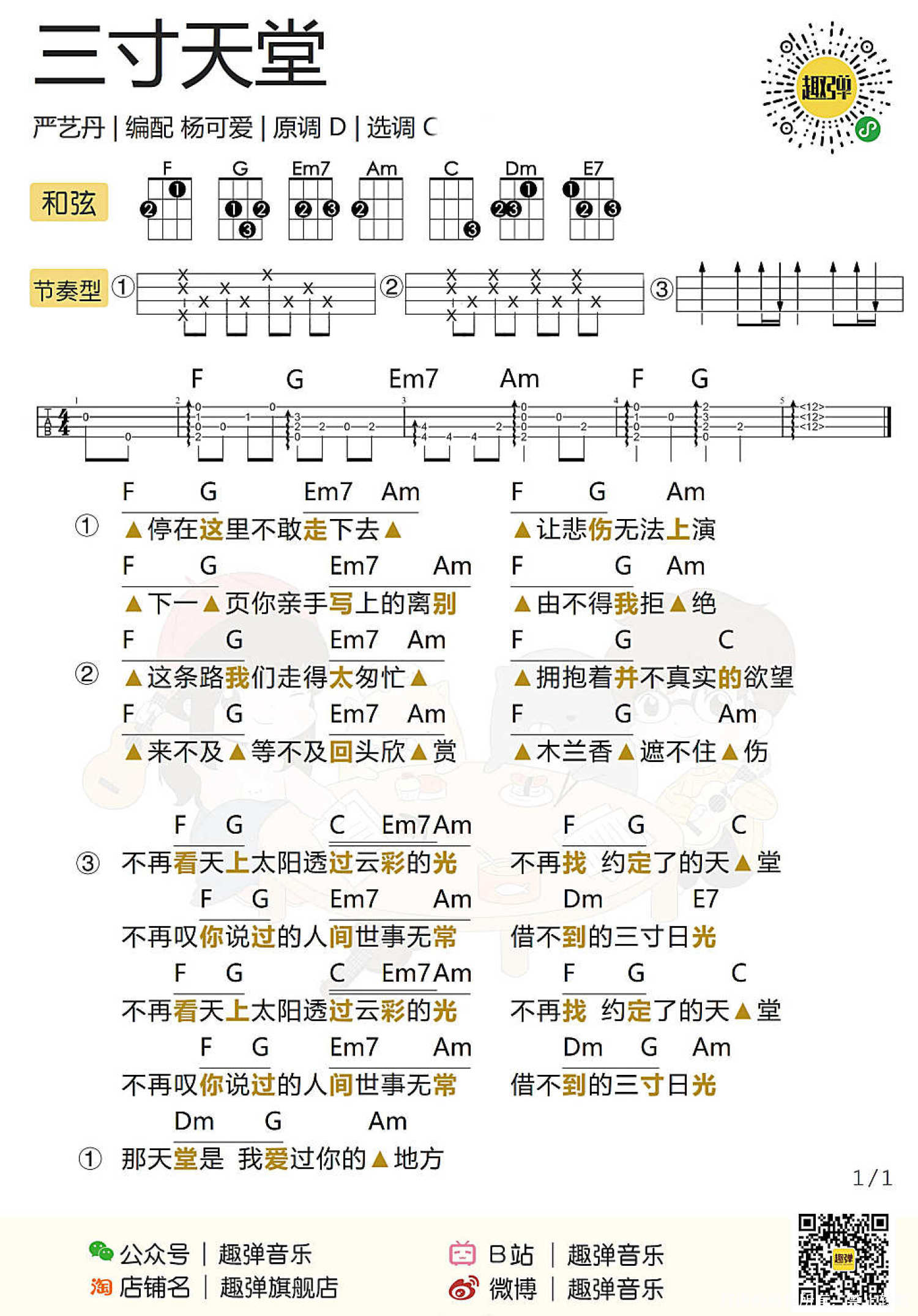 三寸天堂尤克里里谱 - 严艺丹