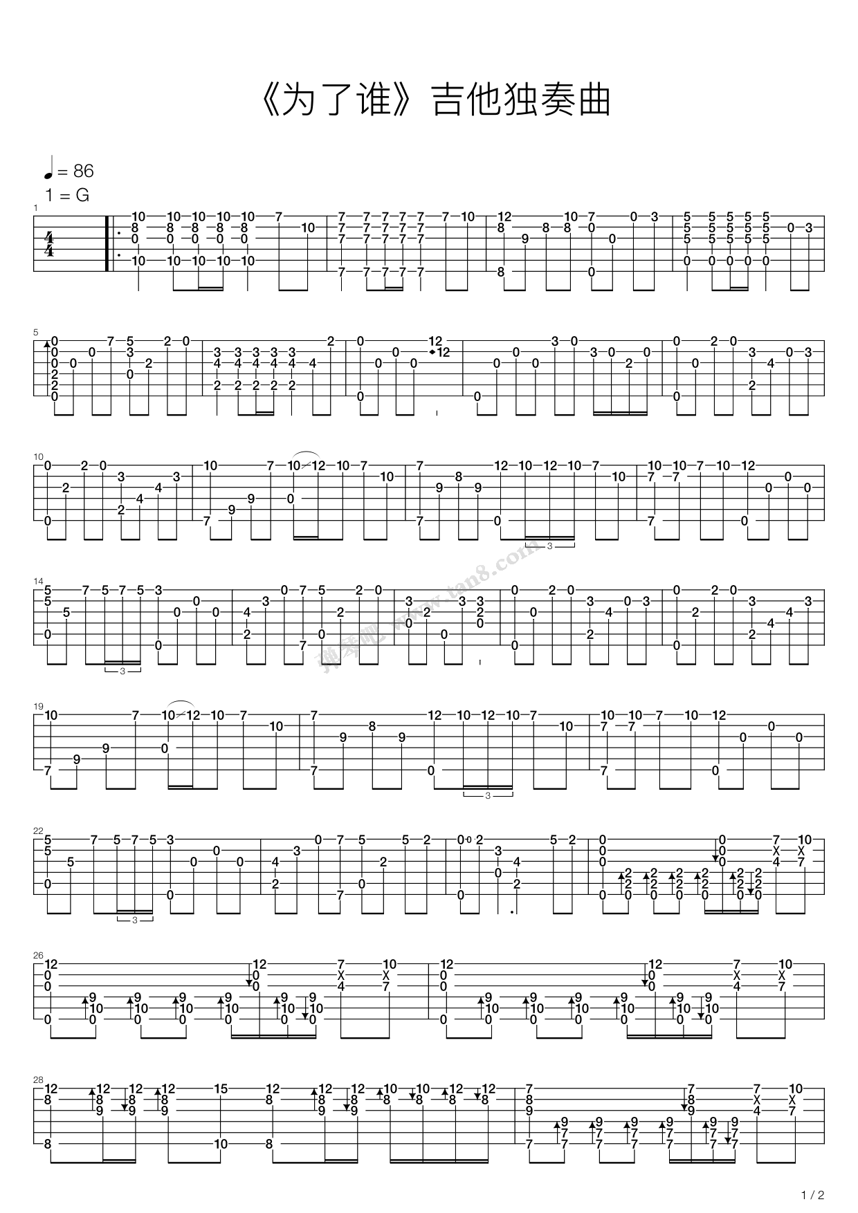 当前位置:琴谱网>吉他独奏>为了谁