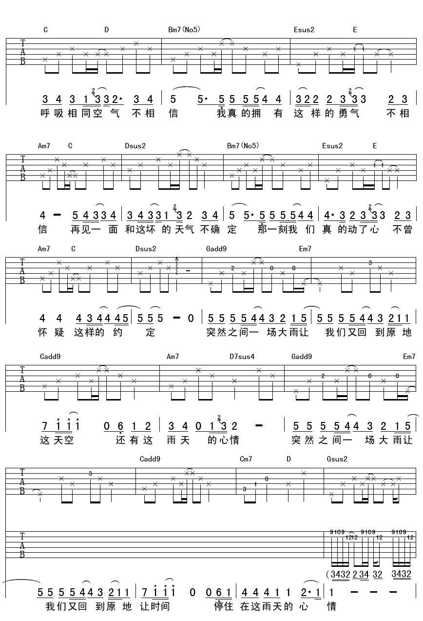 当前位置:琴谱网>吉他弹唱>下雨