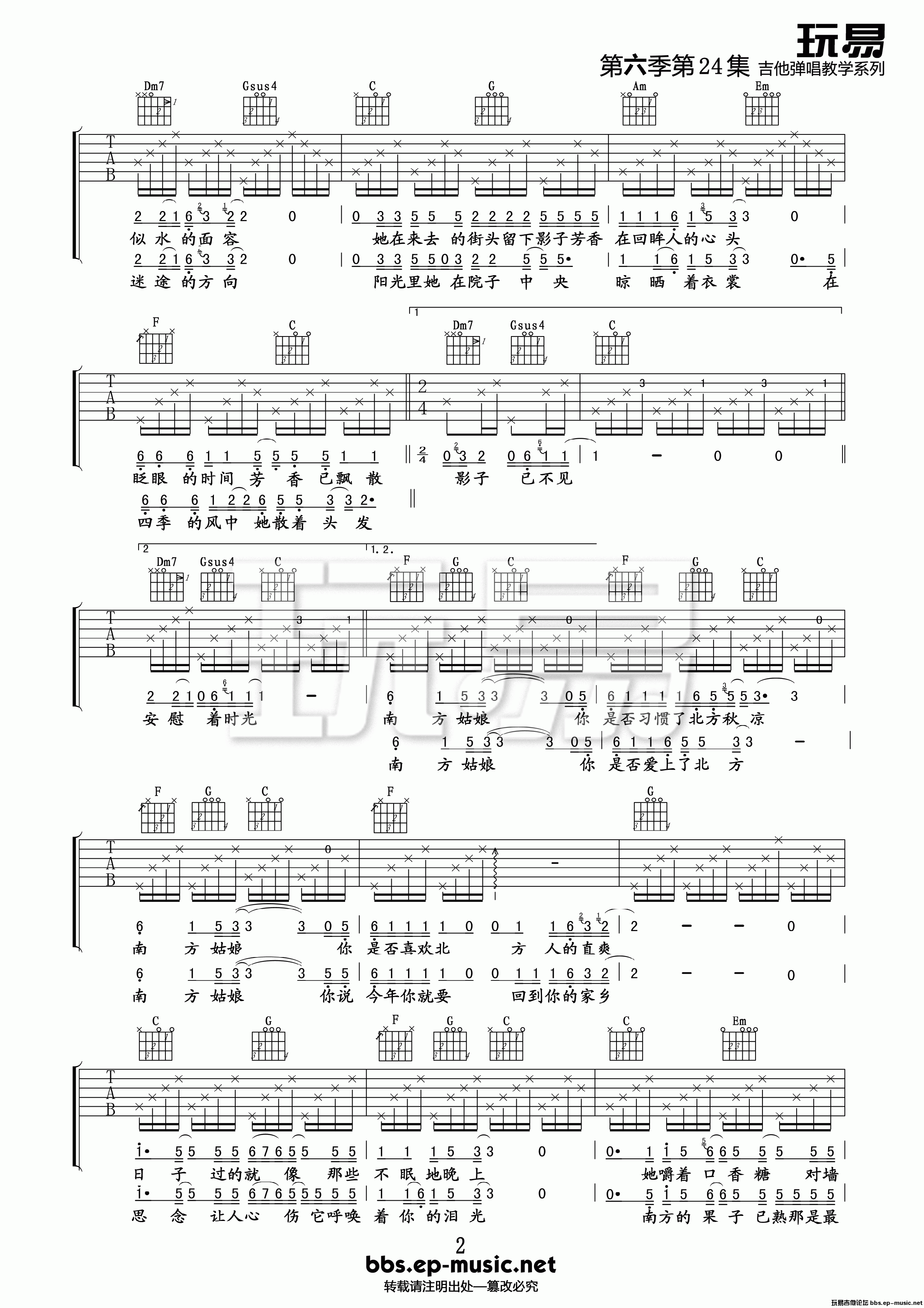 当前位置:琴谱网>吉他弹唱>南方姑娘